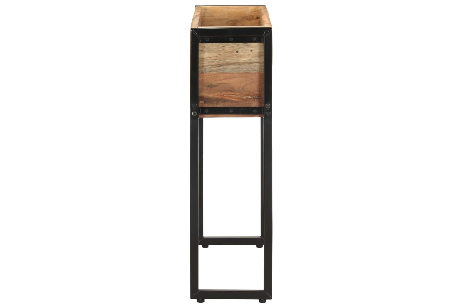 This planter tray is made of reclaimed wood, which means every piece of furniture is unique and slightly different from the next. Furniture made of reclaimed wood has the characteristics of different woods. Reclaimed wood is solid, stable, durable, and beautiful. Signs of wear and visible grain structure give each piece its own history and unique look. The powder-coated steel frame also adds extra stability. The flower box is situated at an ideal working height, making planting easier on your back and knees and reducing fatigue. Additionally, the planter is space-saving as space beneath it can be used to store seeds, soil, a watering can, etc.