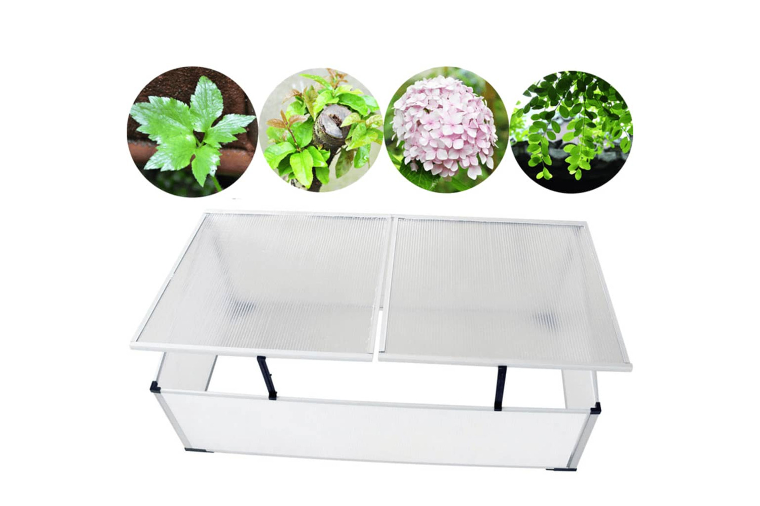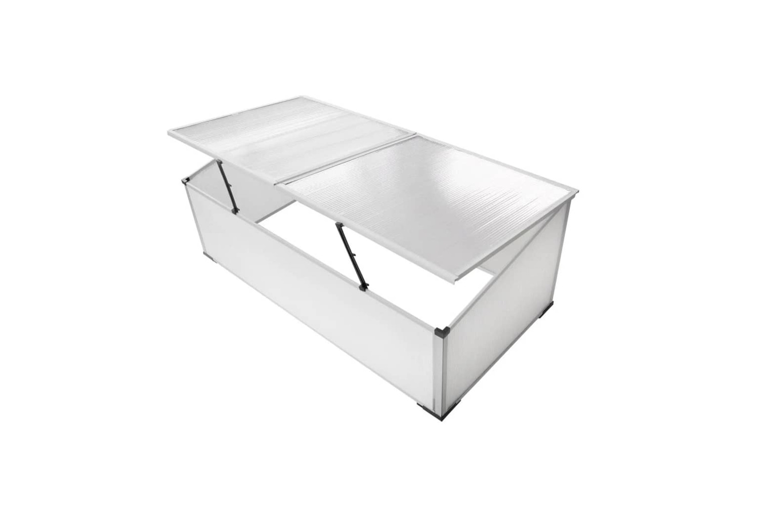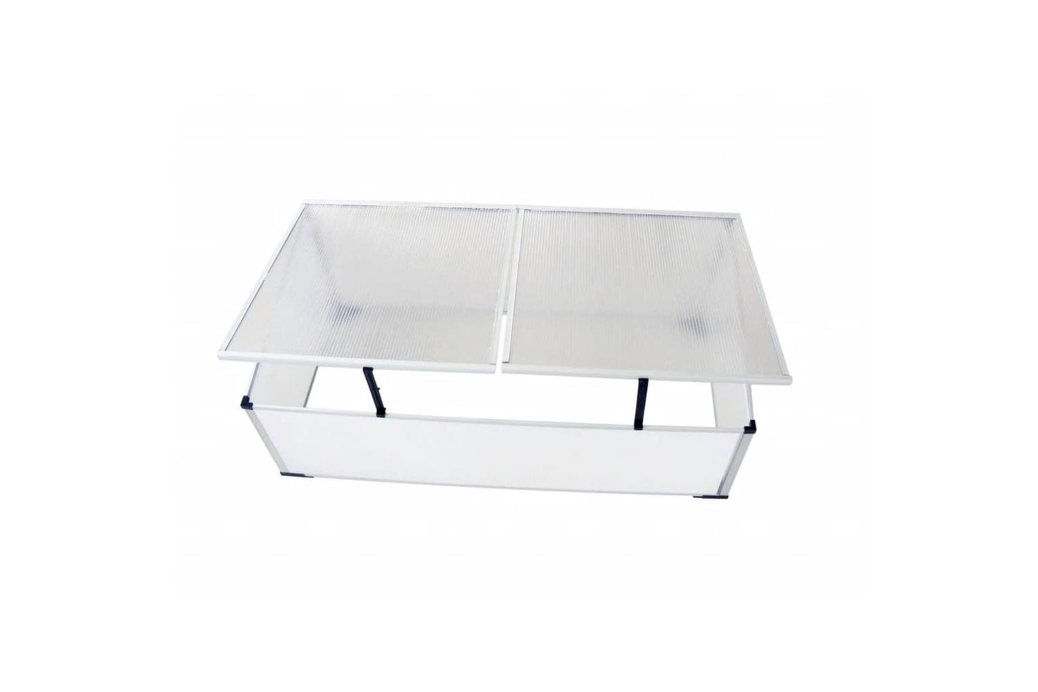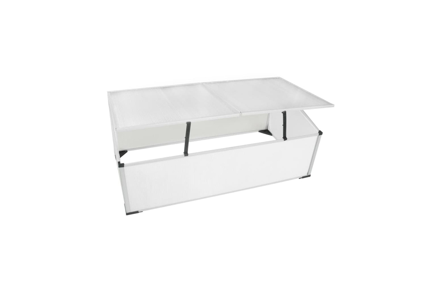 The cold frame makes it possible to start growing flowers and/or plants early in the year. The walls and the lids of the mini-greenhouse are made of polycarbonate. The cold frame has no floor and is simply placed over the young plants or seeds, so you can plant them directly into the earth. The 2 lids can be put up so you are able to reach every corner of the mini-greenhouse.