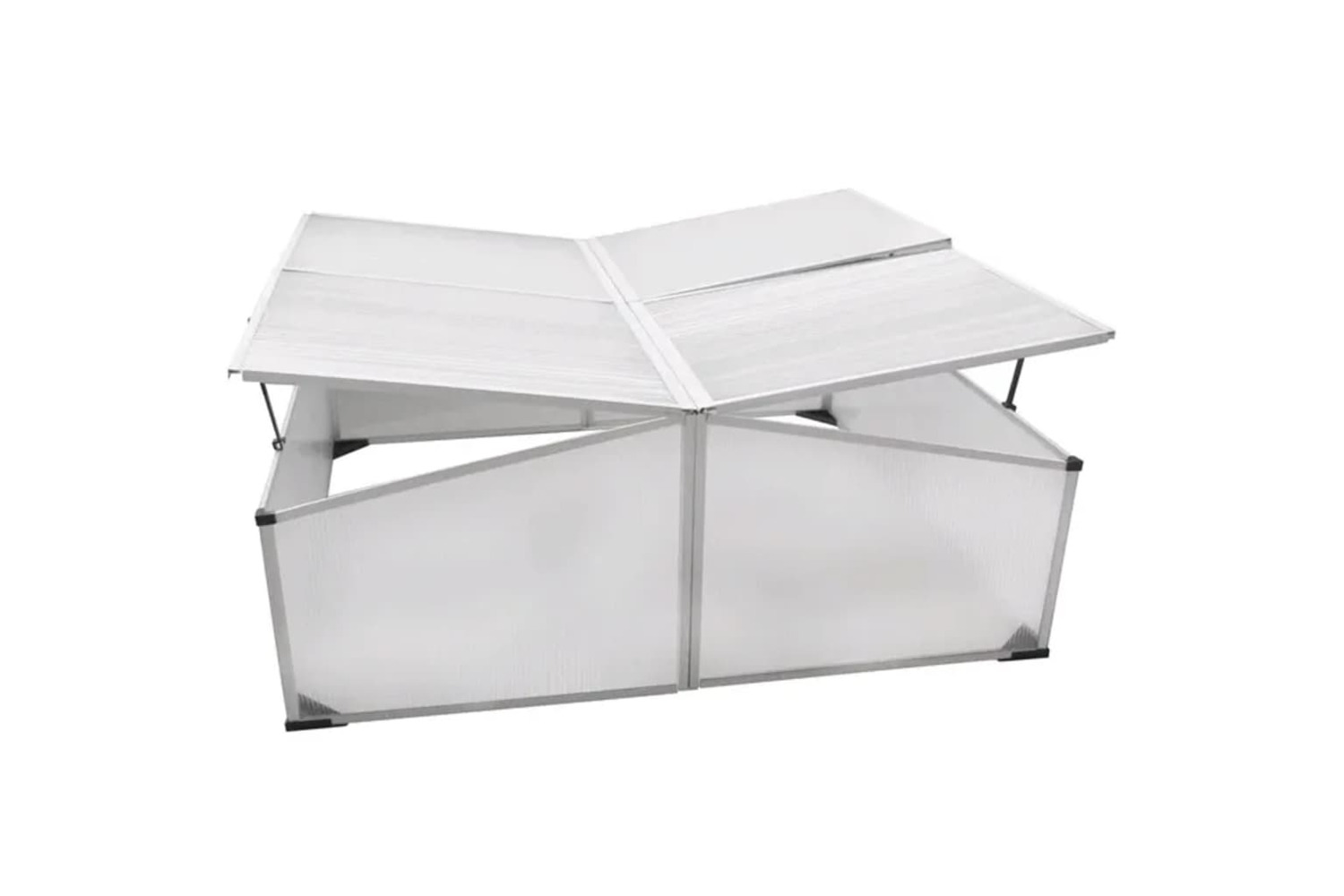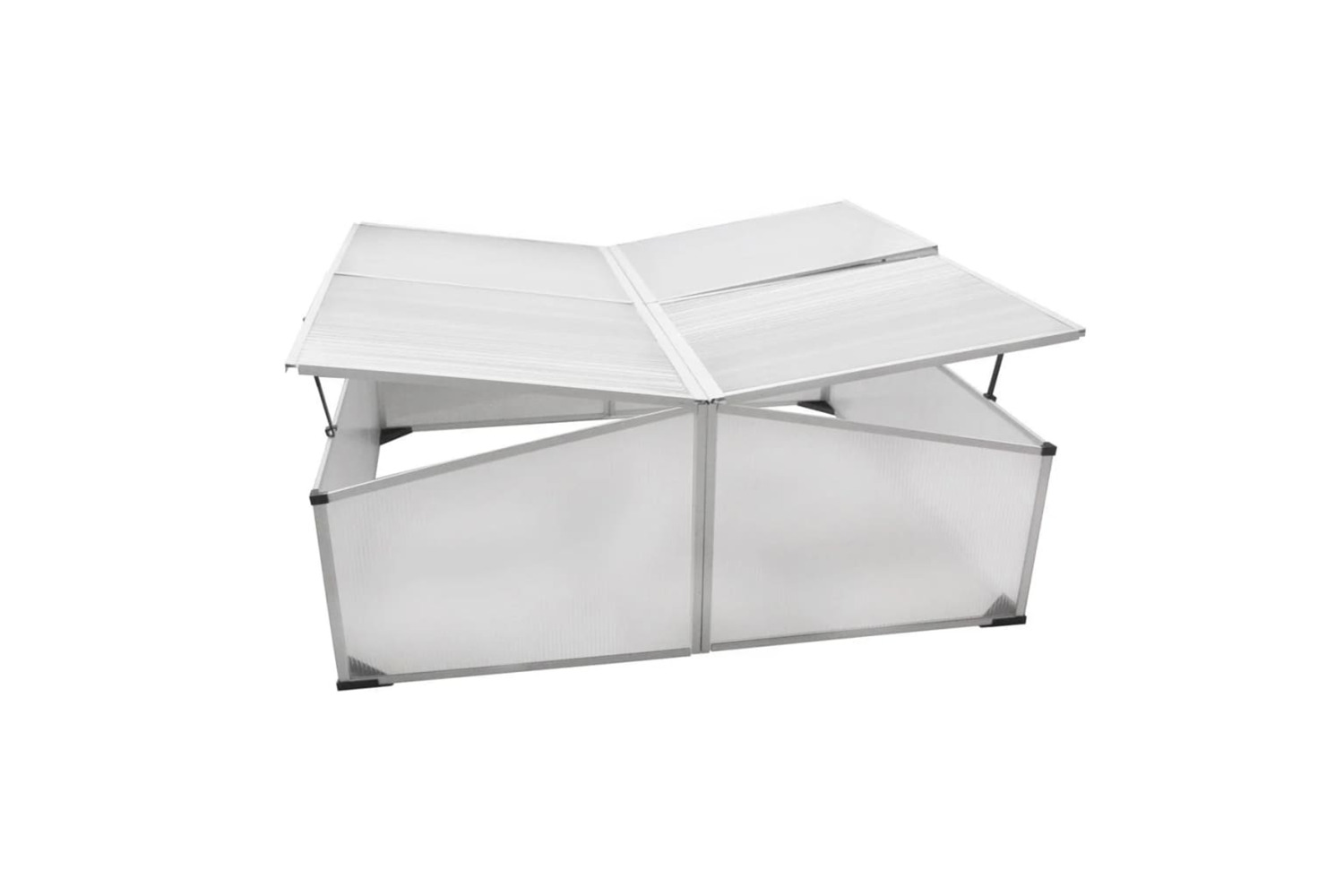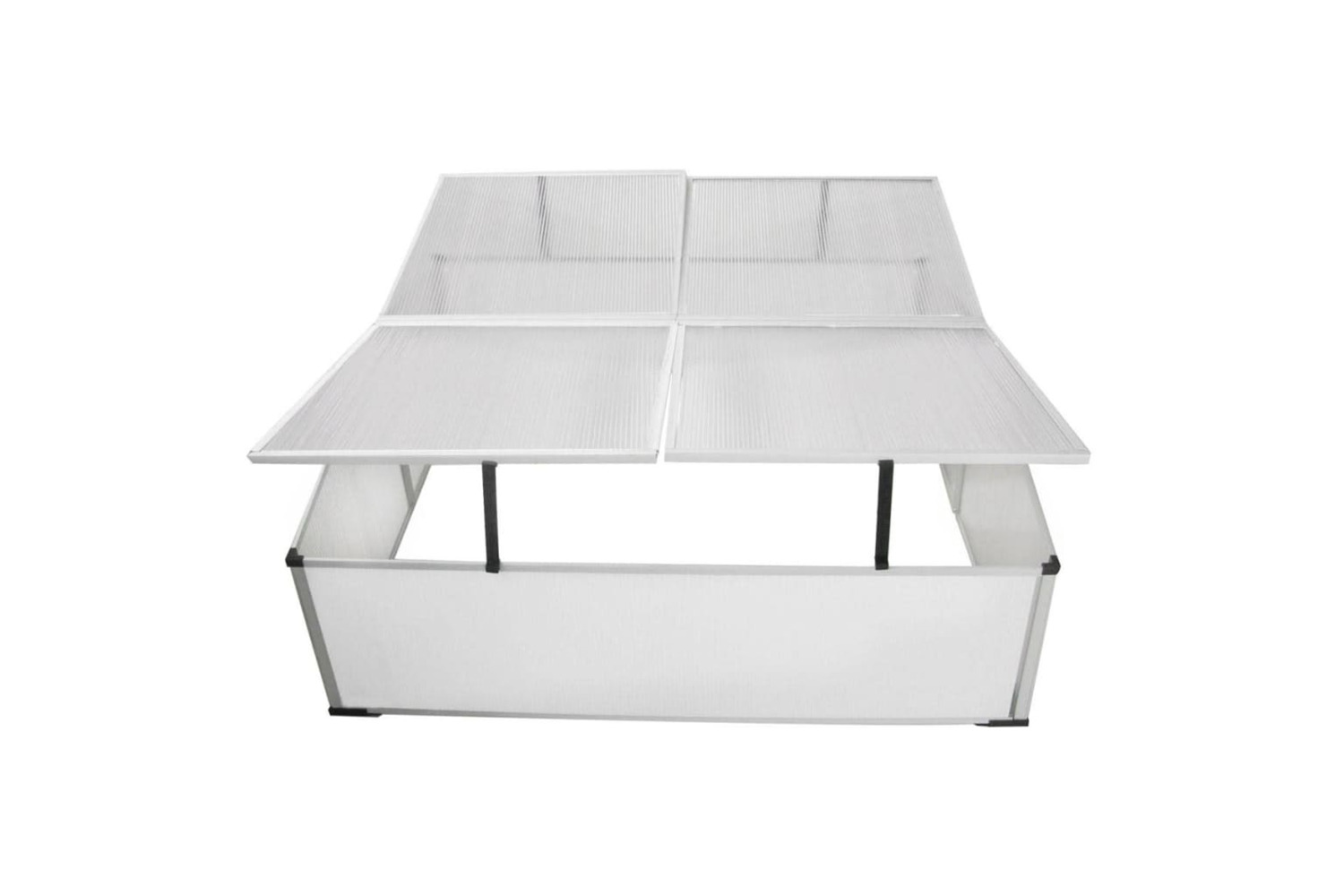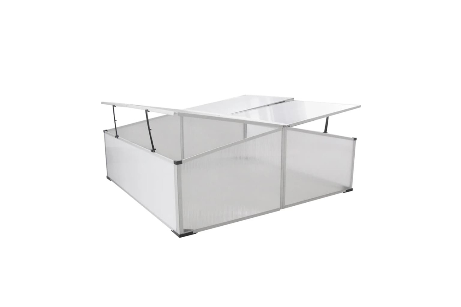 The cold frame makes it possible to start growing flowers and/or plants early in the year. The walls and the lids of the mini-greenhouse are made of polycarbonate. The cold frame has no floor and is simply placed over the young plants or seeds, so you can plant them directly into the earth. The 4 lids can be put up so you are able to reach every corner of the mini-greenhouse.