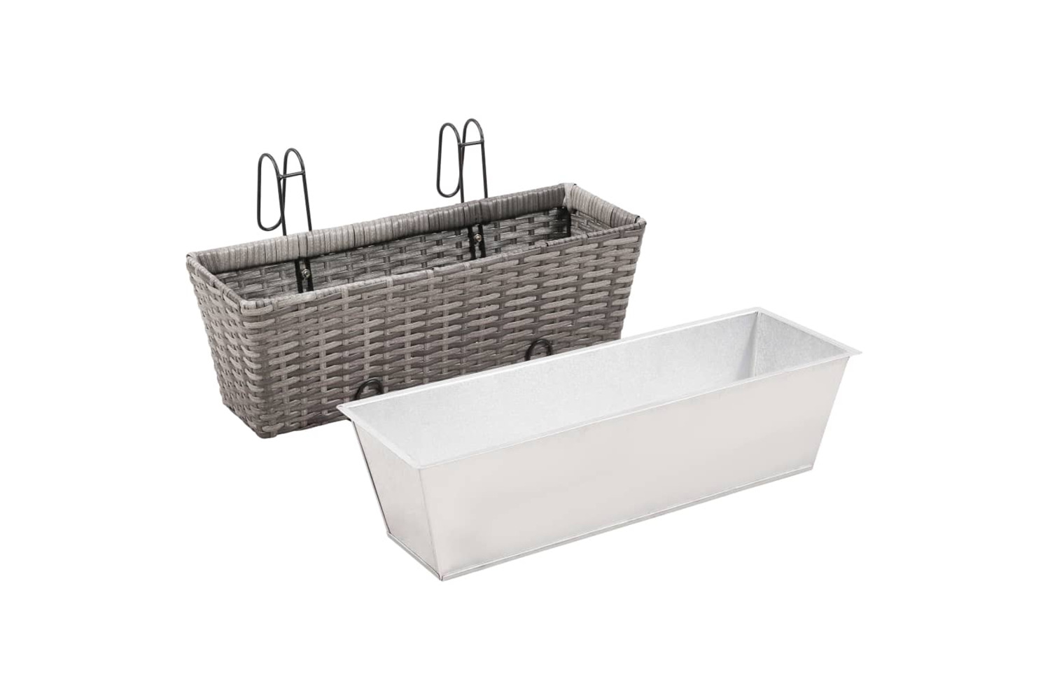 These planters are made of weather-resistant and maintenance-free PE rattan. Therefore, they are perfect for outdoor use. Meanwhile, the metal frame adds the planters' sturdiness and stability. Thanks to the integrated hooks, these garden planters can be easily attached to your windowsills or balcony raillings. These balcony planters are easy to clean with a damp cloth. Each planter is equipped with a removable zinc inner pot.