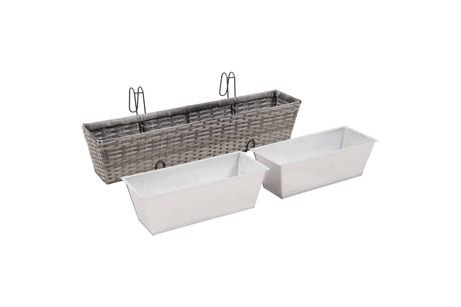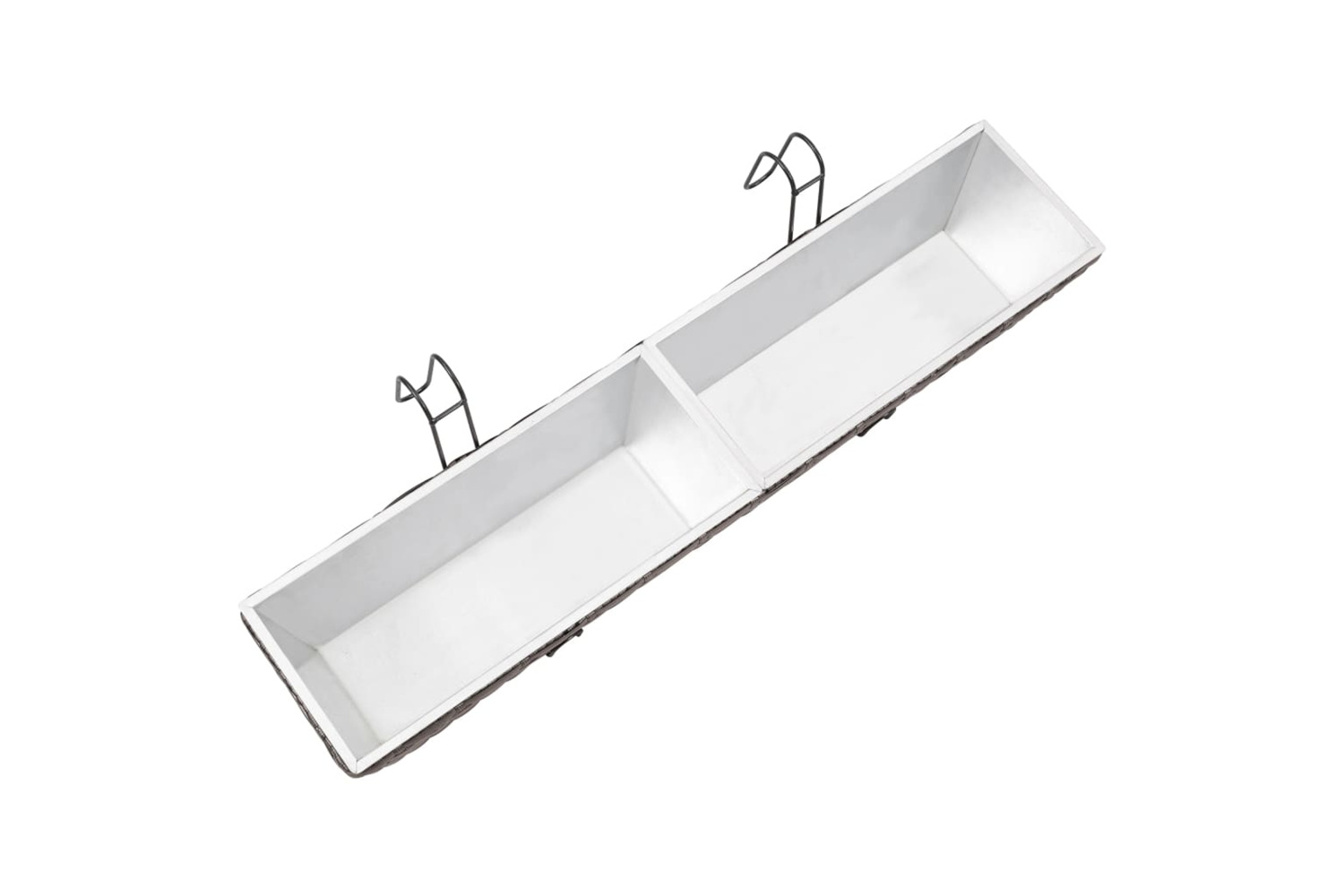 These planters are made of weather-resistant and maintenance-free PE rattan. Therefore, they are perfect for outdoor use. Meanwhile, the metal frame adds the planters' sturdiness and stability. Thanks to the integrated hooks, these garden planters can be easily attached to your windowsills or balcony raillings. These balcony planters are easy to clean with a damp cloth. Each planter is equipped with two removable zinc inner pots.