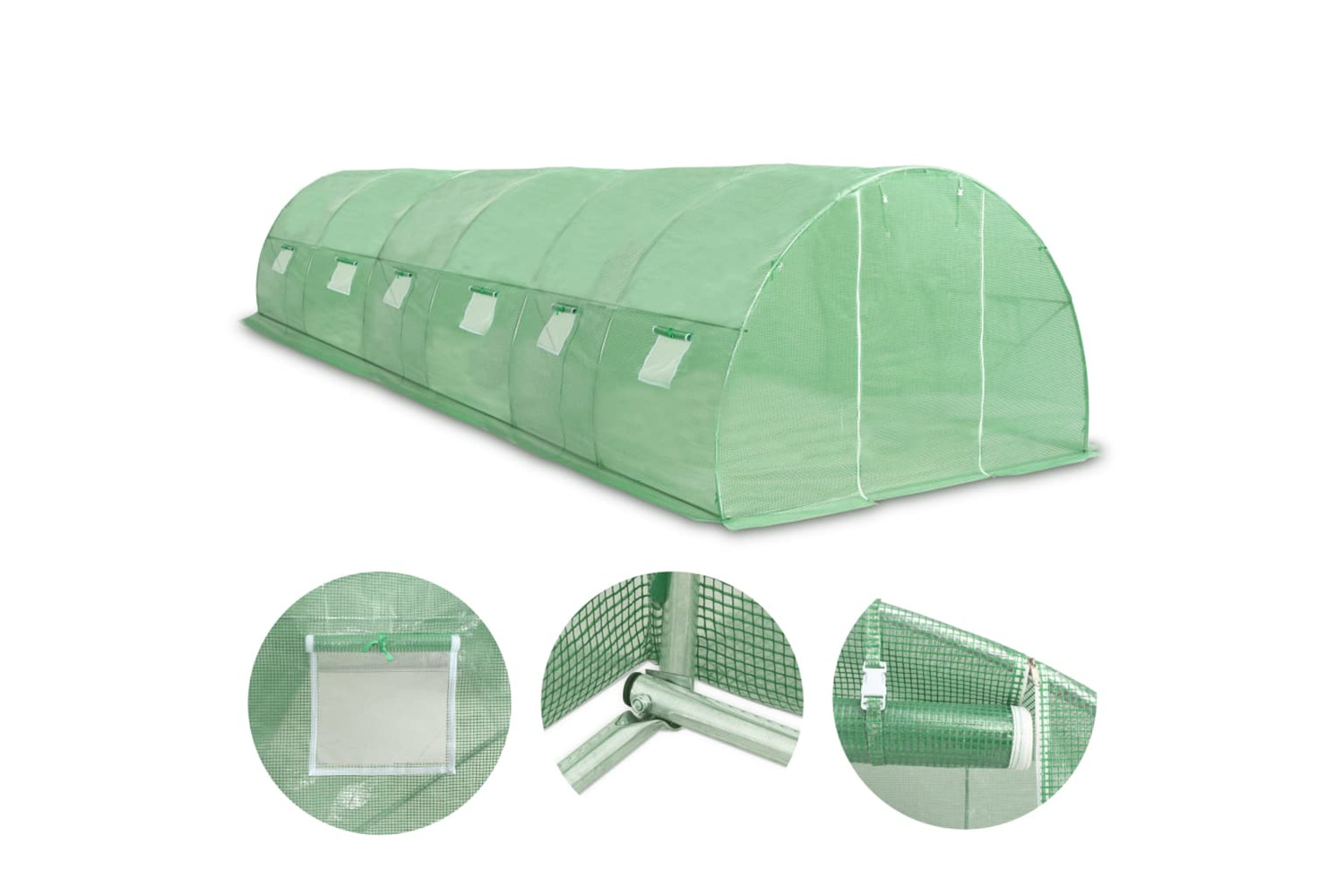 This plant house will be a great solution for protecting your plants against wind, rain, sunshine and bird damage. The greenhouse is made of 140g/m? PE mesh fabric, which is 25% heavier than the standard mesh fabric of many competitors. Consequently, it prevents external influences even better. This plant house has a sturdy and rust-proof galvanised steel frame for extra stability. This greenhouse is equipped with twelve 38x38 cm windows for ventilation and one 100x185 cm door as well.
