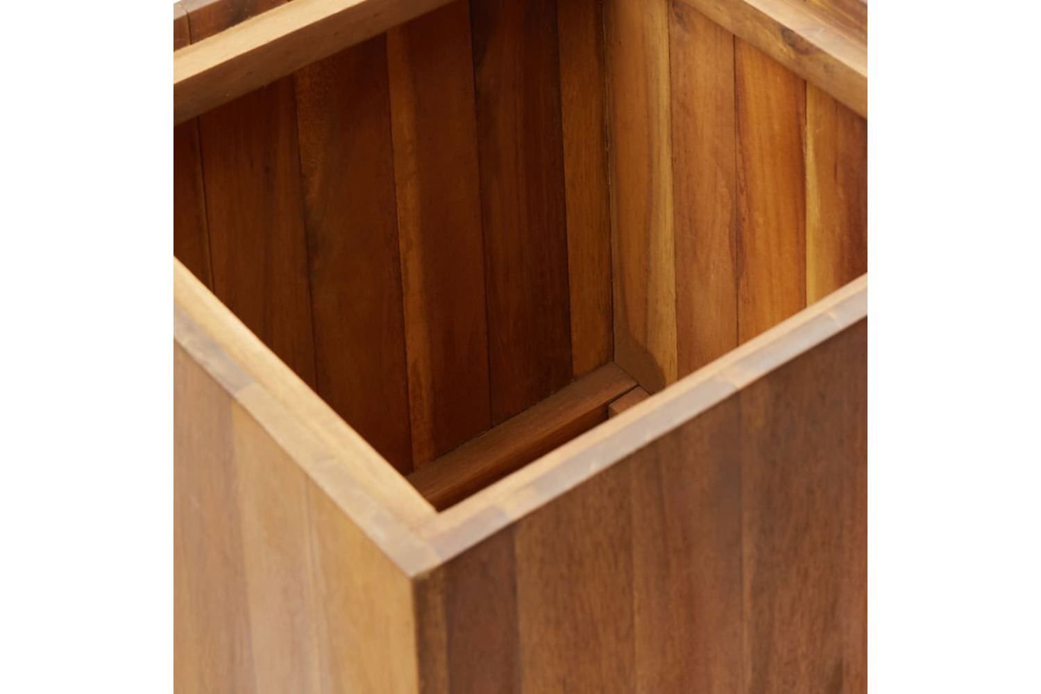 The planter has a simple design and will add a splash of natural colour to your outdoor living space. The planter is deep and wide enough to hold a large amount of soil and provide ample space for your plants, vegetables, herbs and flowers. Made of solid acacia wood with an oil finish, the planter pot is weather resistant and therefore very practical for outdoor use. Open bottom ensures well water drainage and breathability of plants. It includes 1 inserted plastic pot.