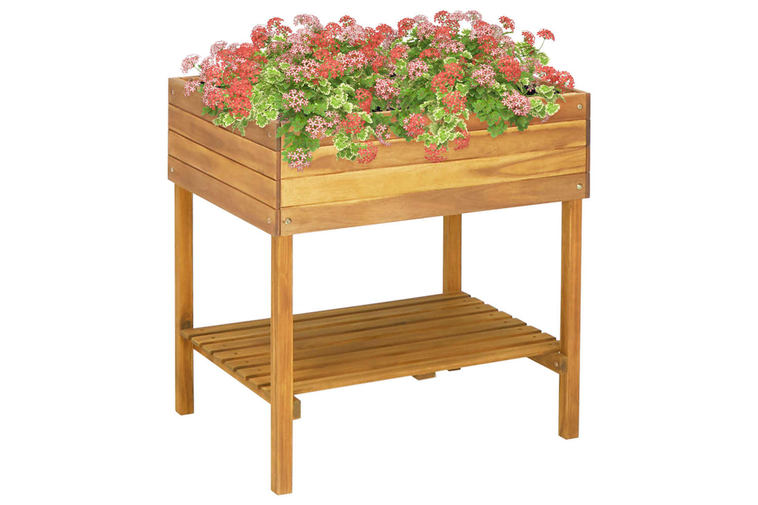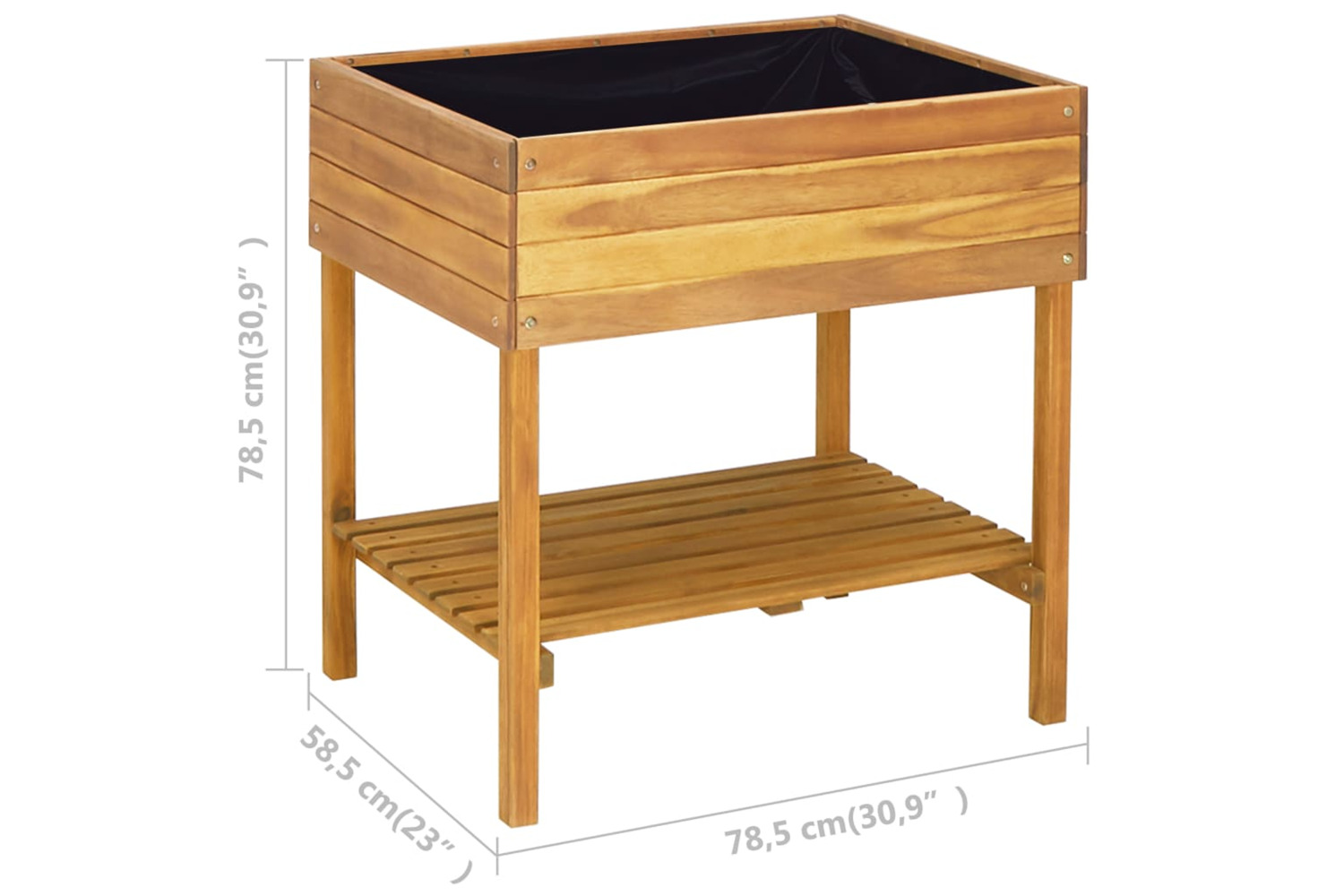 The raised planter is made of solid acacia wood that has been given a light oil finish to bring out its rich, natural colour and make the planter weather resistant. The planter has an understated, rustic design and will add a touch of natural charm to your outdoor living space.