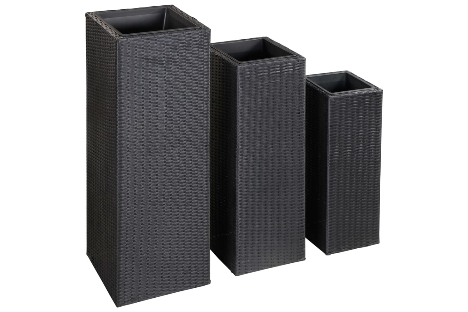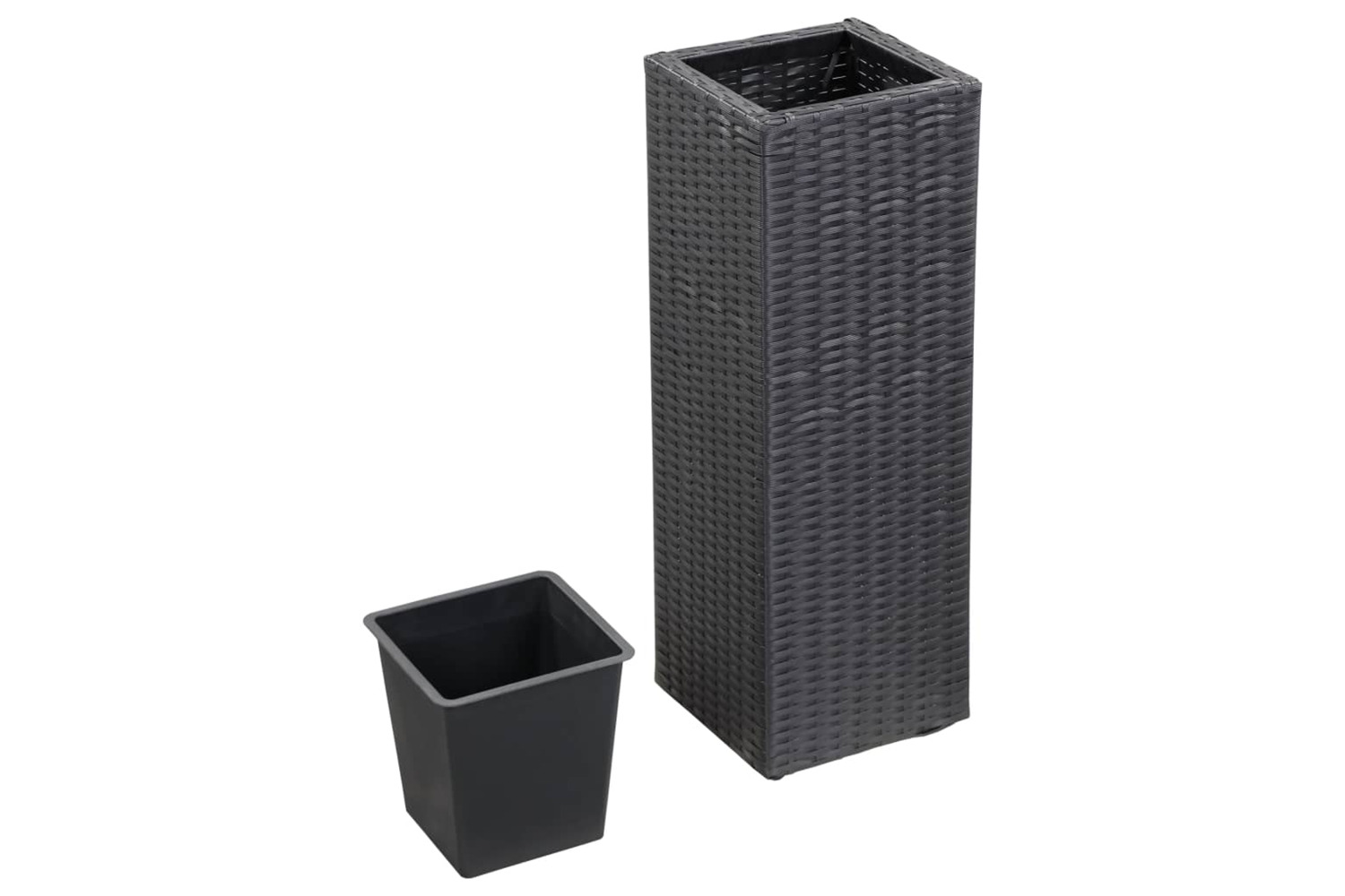 These planters are made of weather-resistant poly rattan. Therefore, they are perfect for outdoor use. These patio planters are easy to clean with a damp cloth. These garden planters are equipped with a removable inner pot. Get ready to add a touch of green to your garden, terrace and balcony with our beautiful planters!