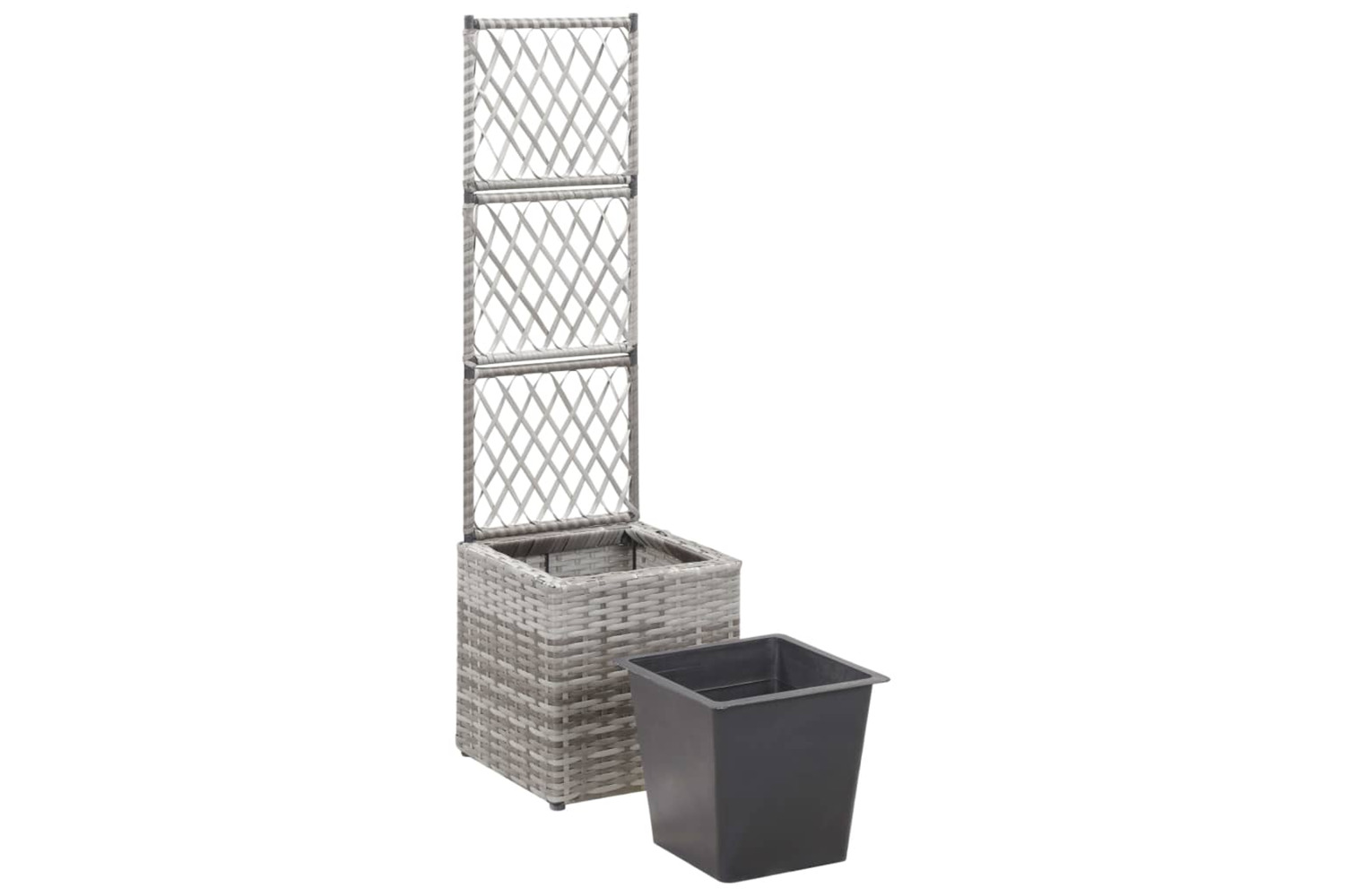 This poly rattan raised bed with 1 removable pot, featuring a built-in trellis, will add a touch of charm to any outdoor space.