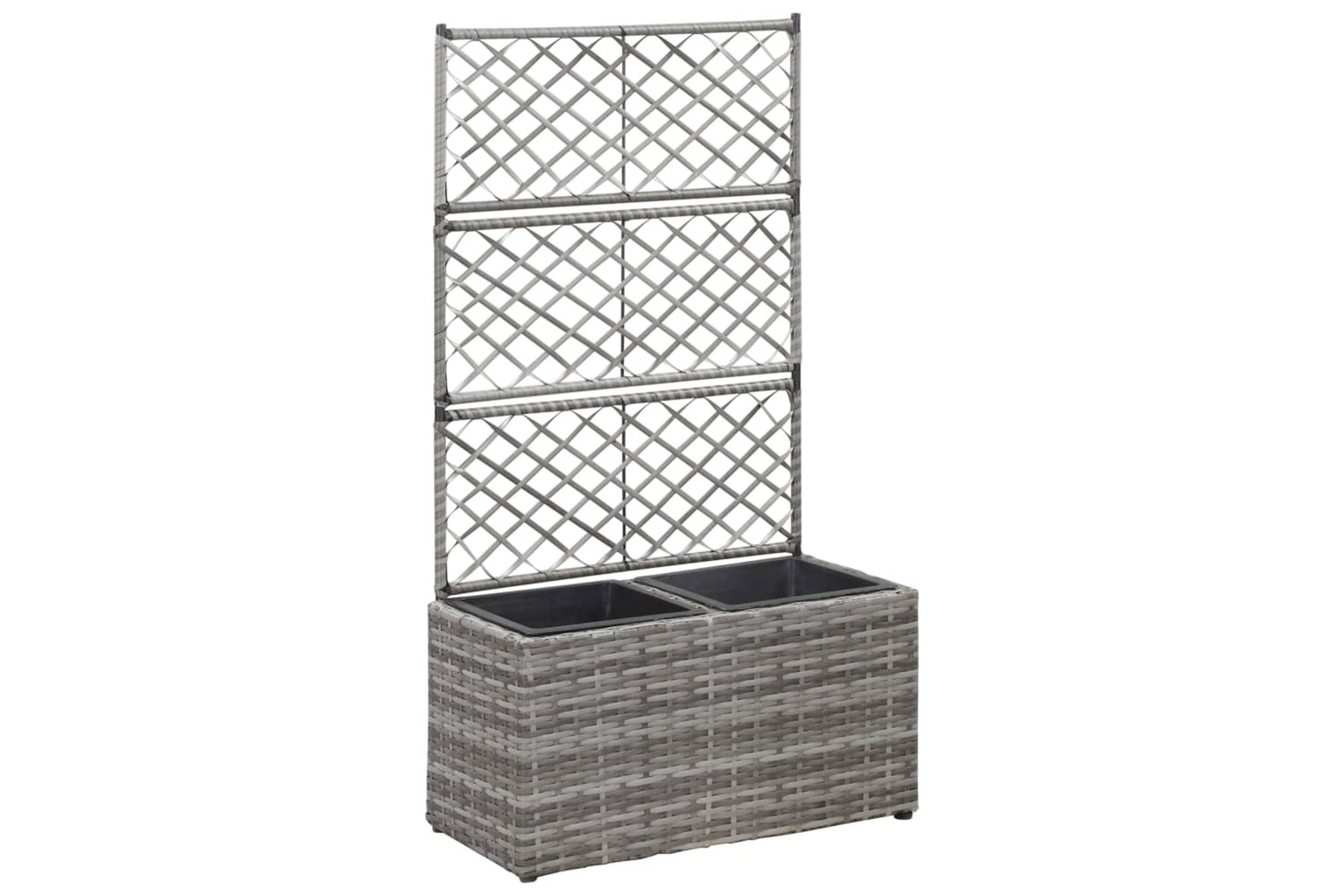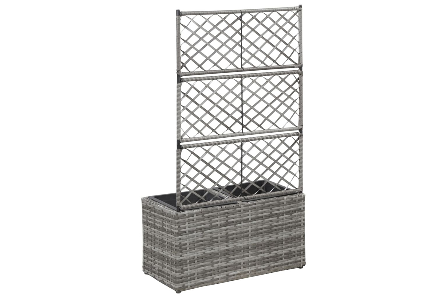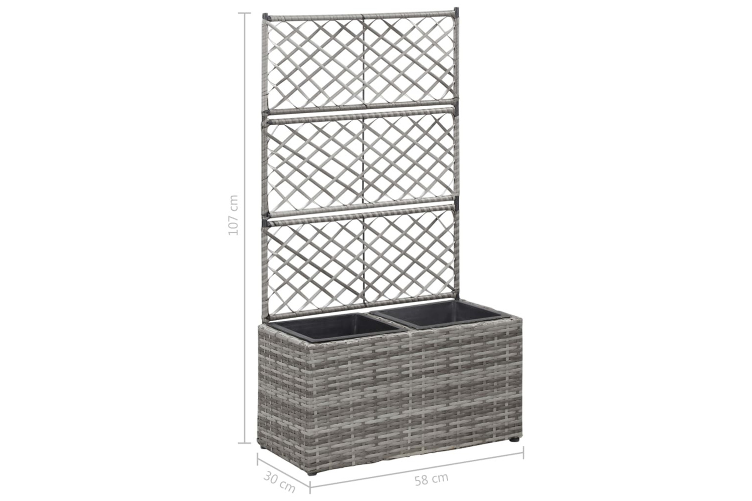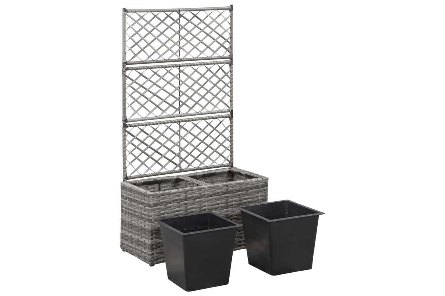 This poly rattan raised bed with 2 removable pots, featuring a built-in trellis, will add a touch of charm to any outdoor space.