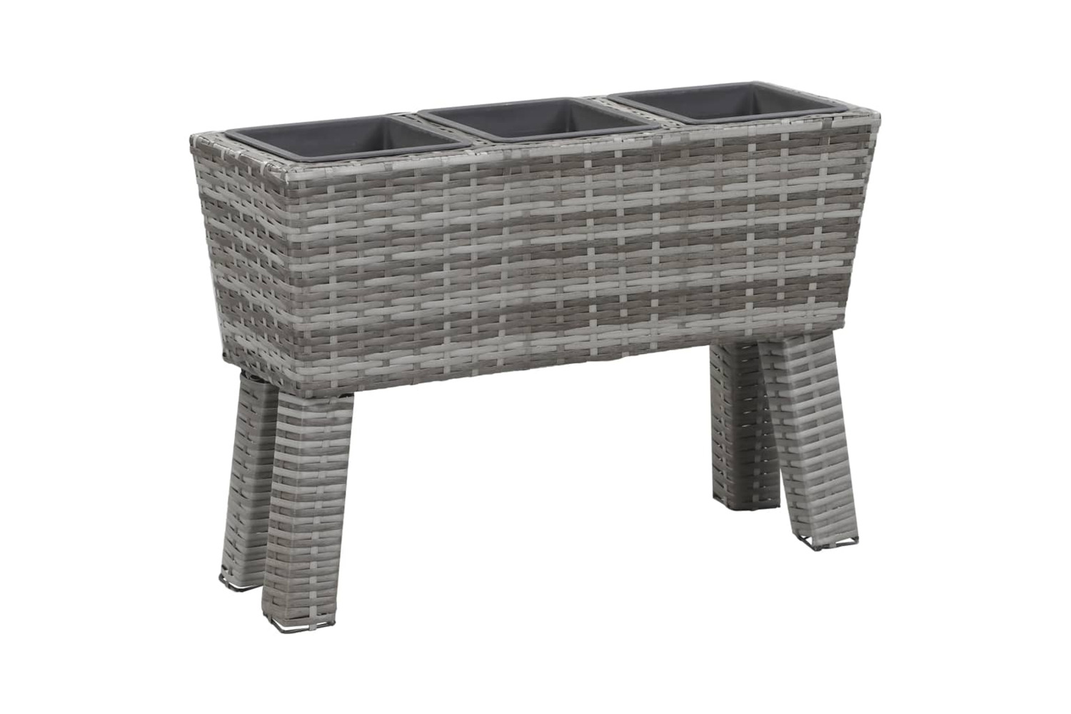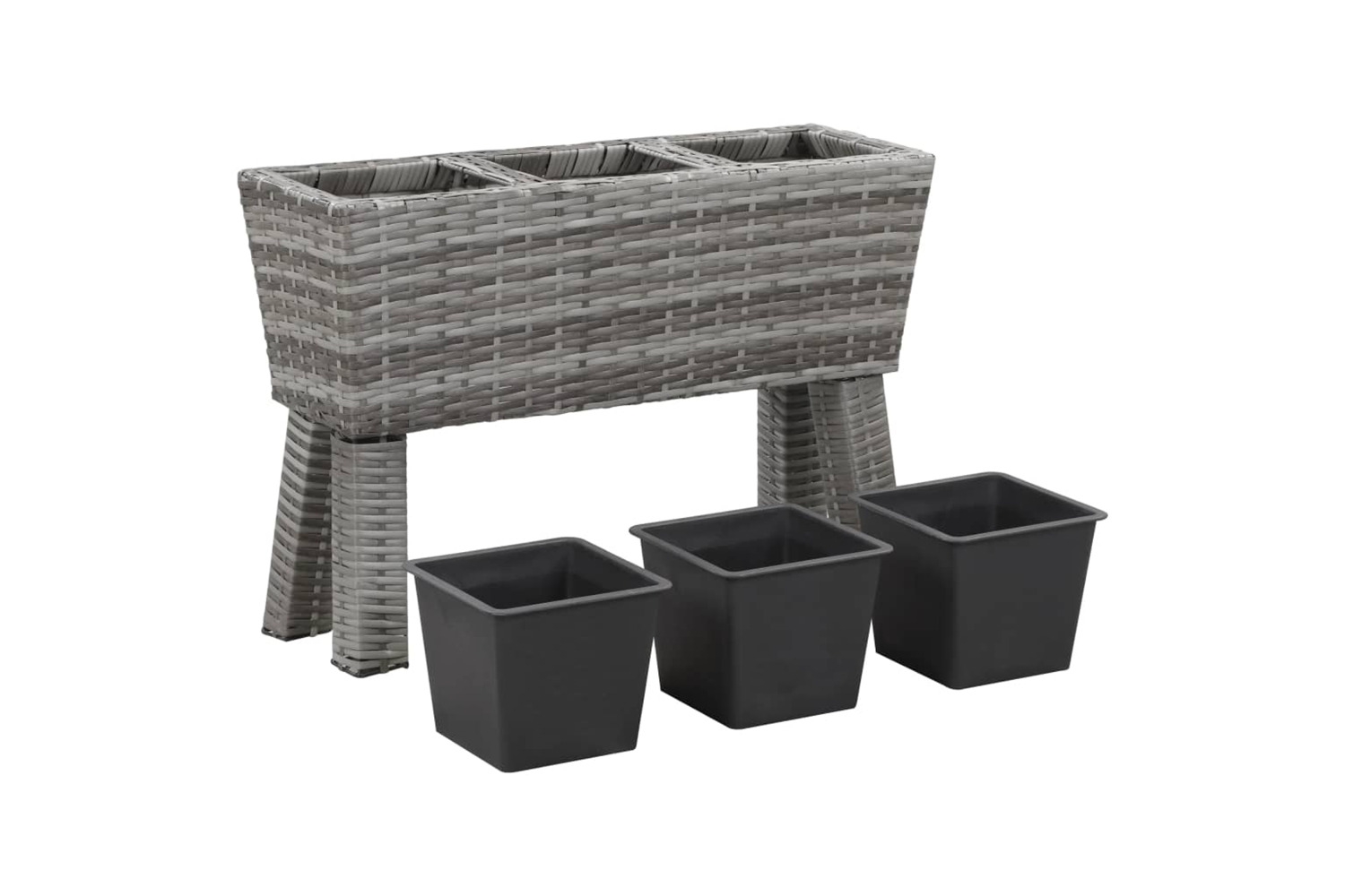 This lovely garden raised bed set consists of 1 poly rattan planter with legs and 3 plastic pots.