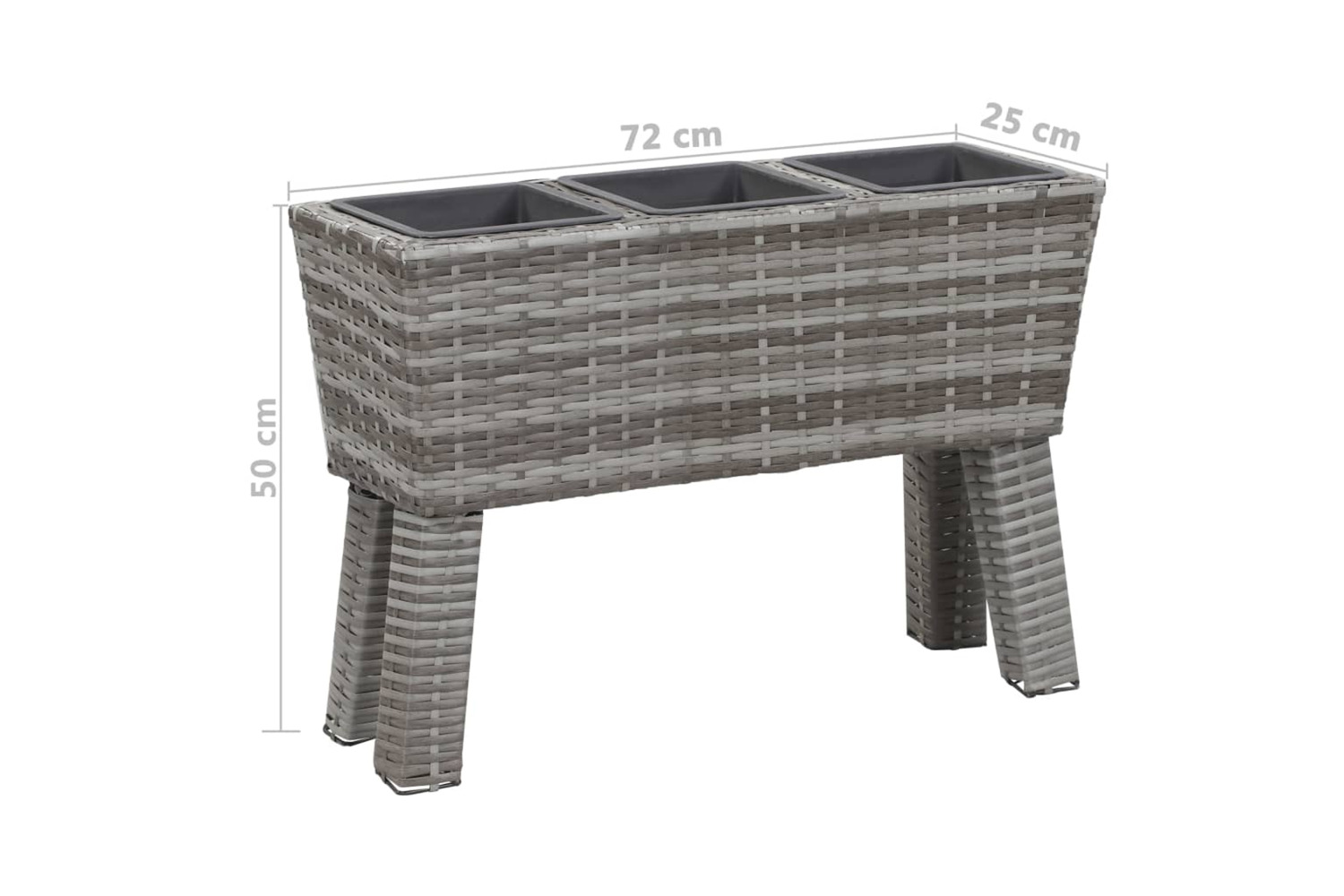 - Planter dimensions: 72 x 25 x 50 cm (L x W x H)