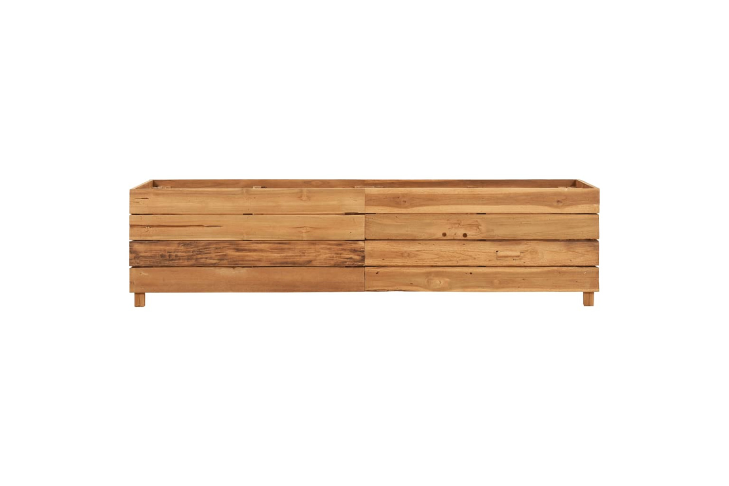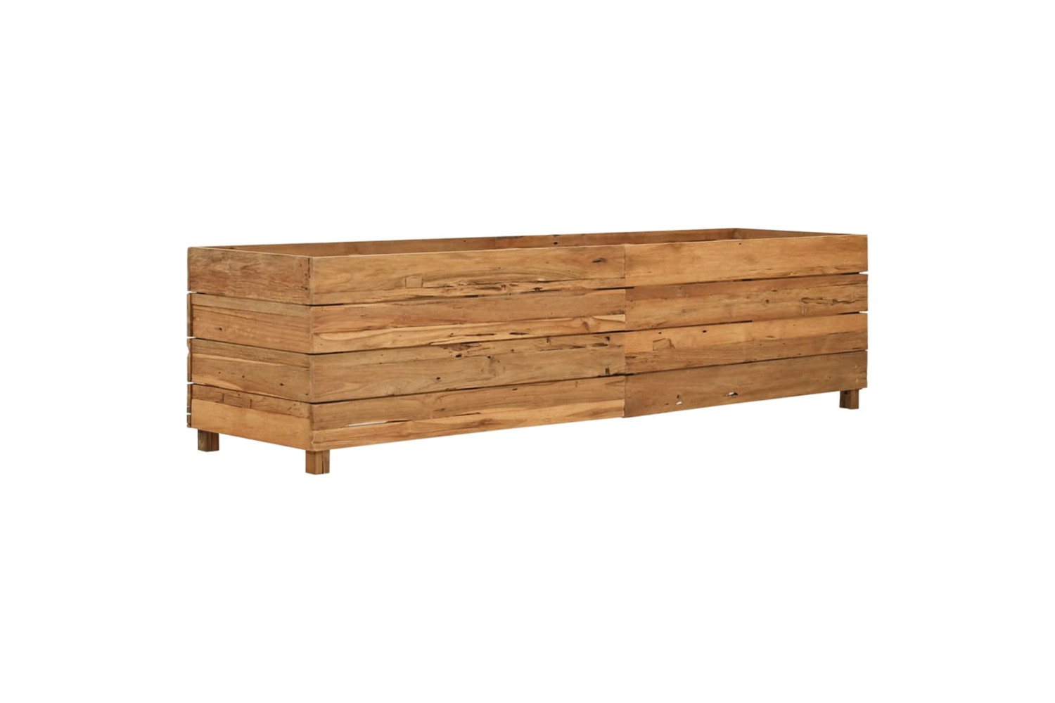 Made of recycled teak wood, this planter is very sturdy and durable. The beautiful wood grains make every piece of furniture unique and slightly different from the next. Four wooden legs at the bottom enhance extra stability. The bottom of the planter is equipped with a steel rack to put flower pots on. Additionally, the item is easy to assemble.