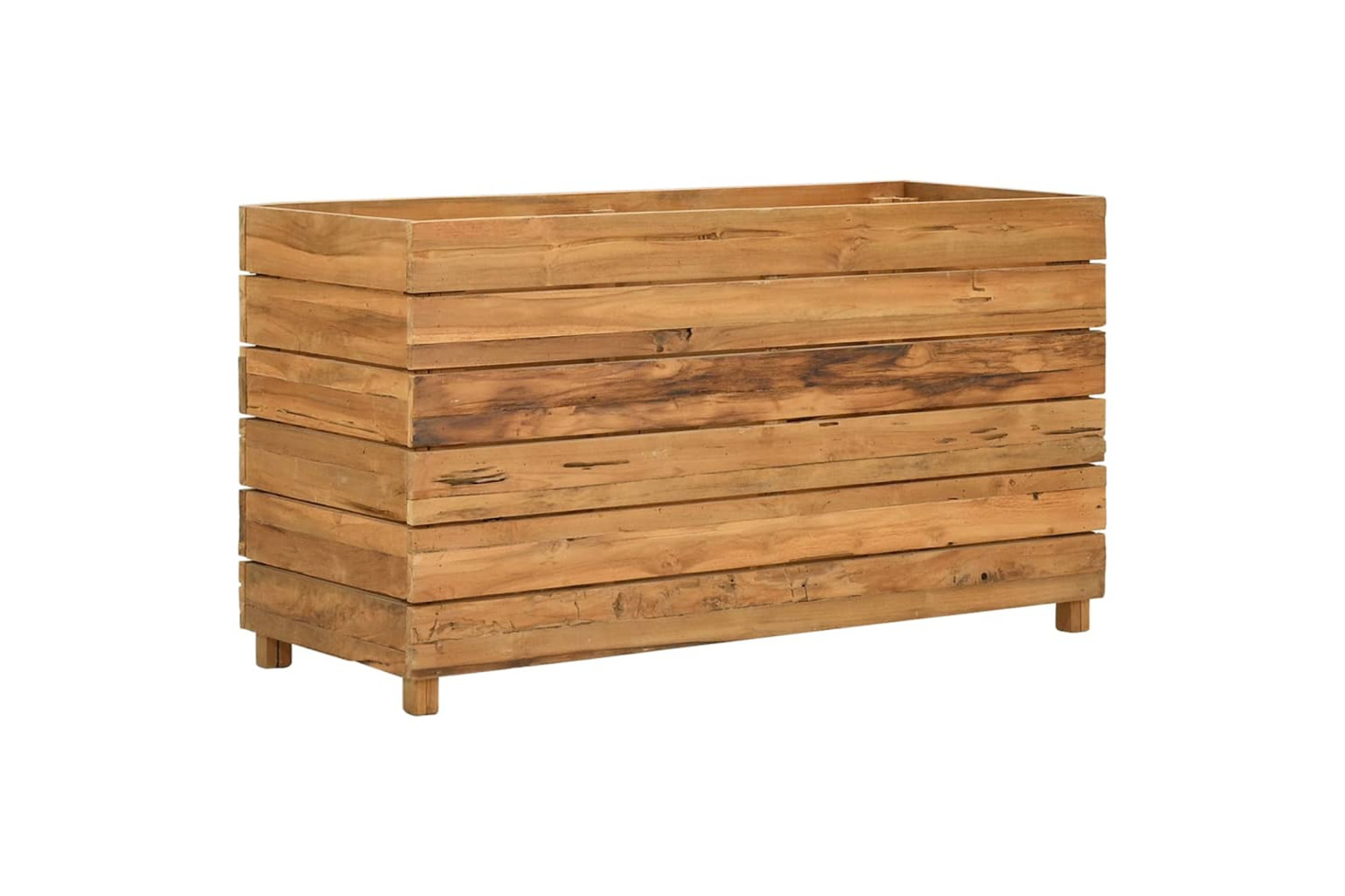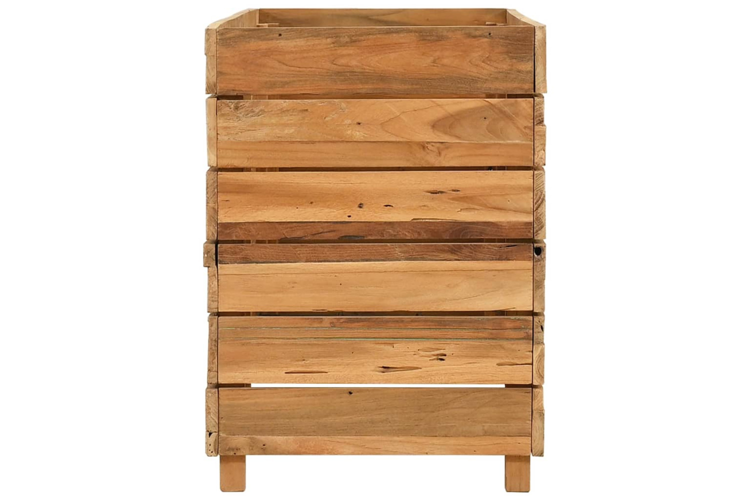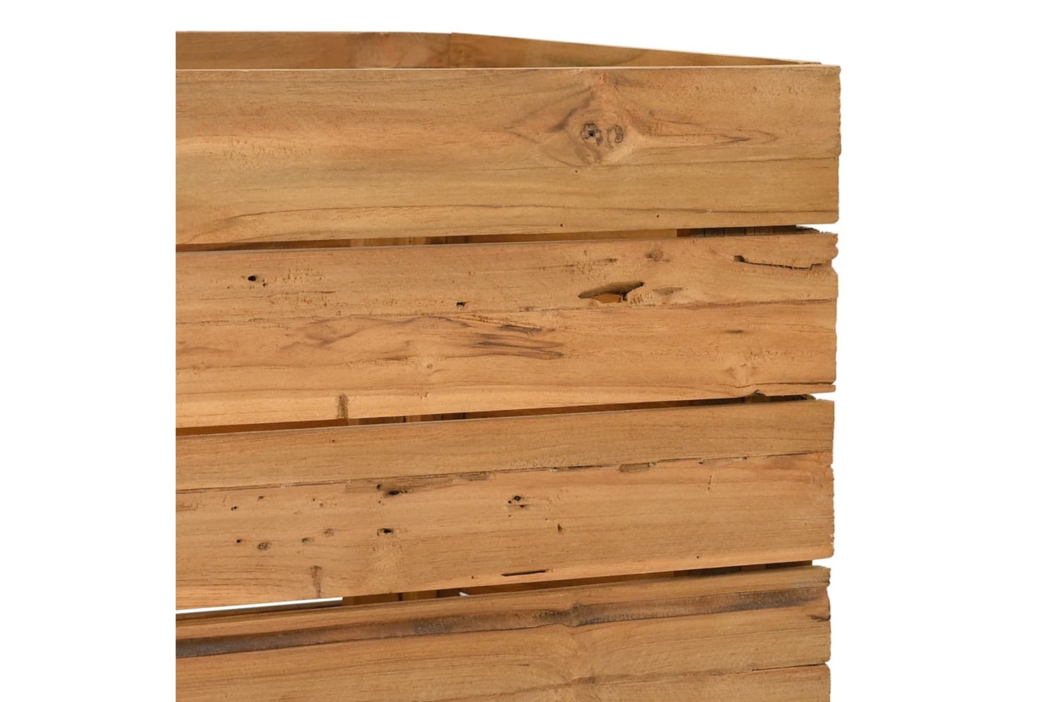Made of recycled teak wood, this planter is very sturdy and durable. The beautiful wood grains make every piece of furniture unique and slightly different from the next. Four wooden legs at the bottom enhance extra stability. The bottom of the planter is equipped with a steel rack to put flower pots on. Additionally, the item is easy to assemble.