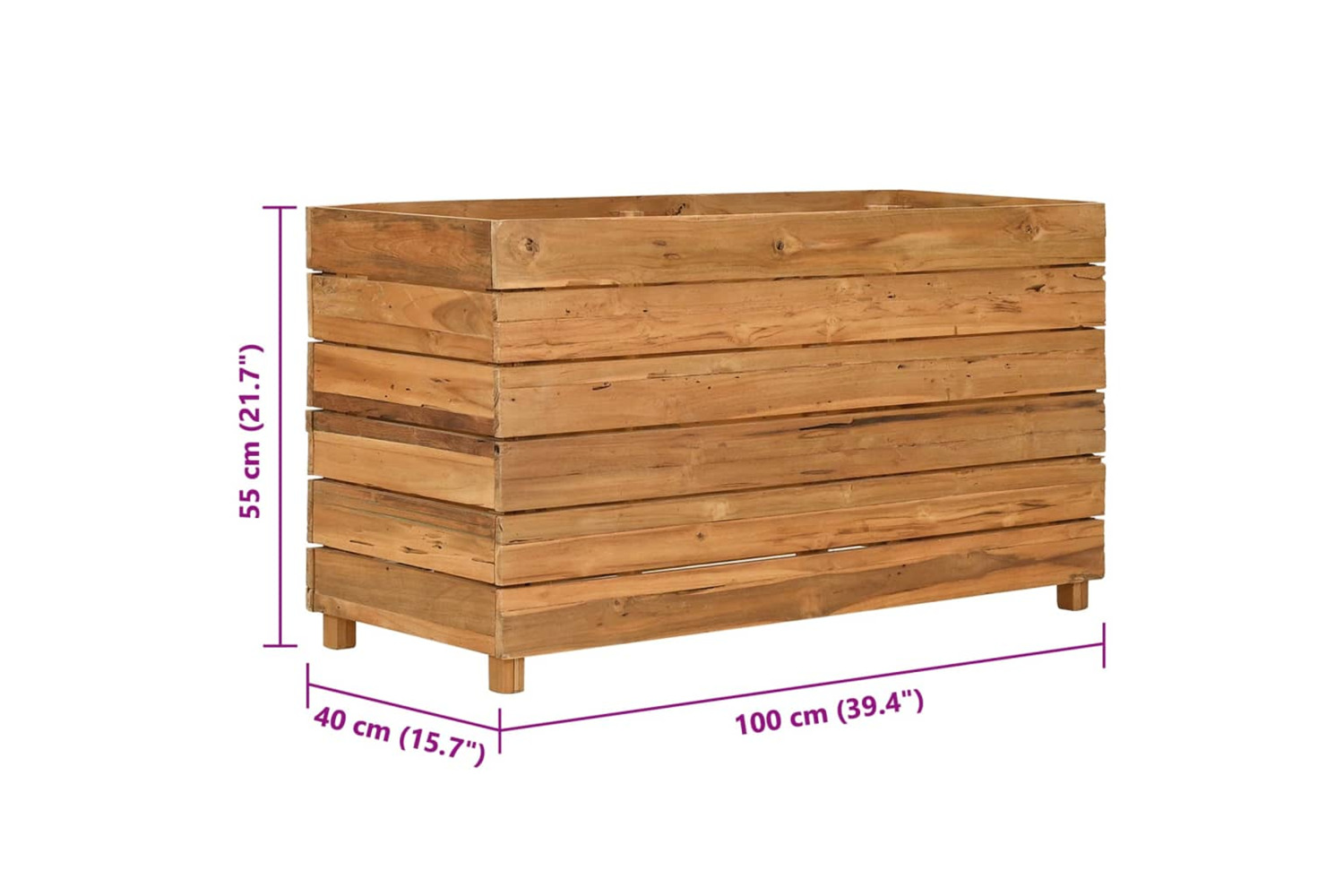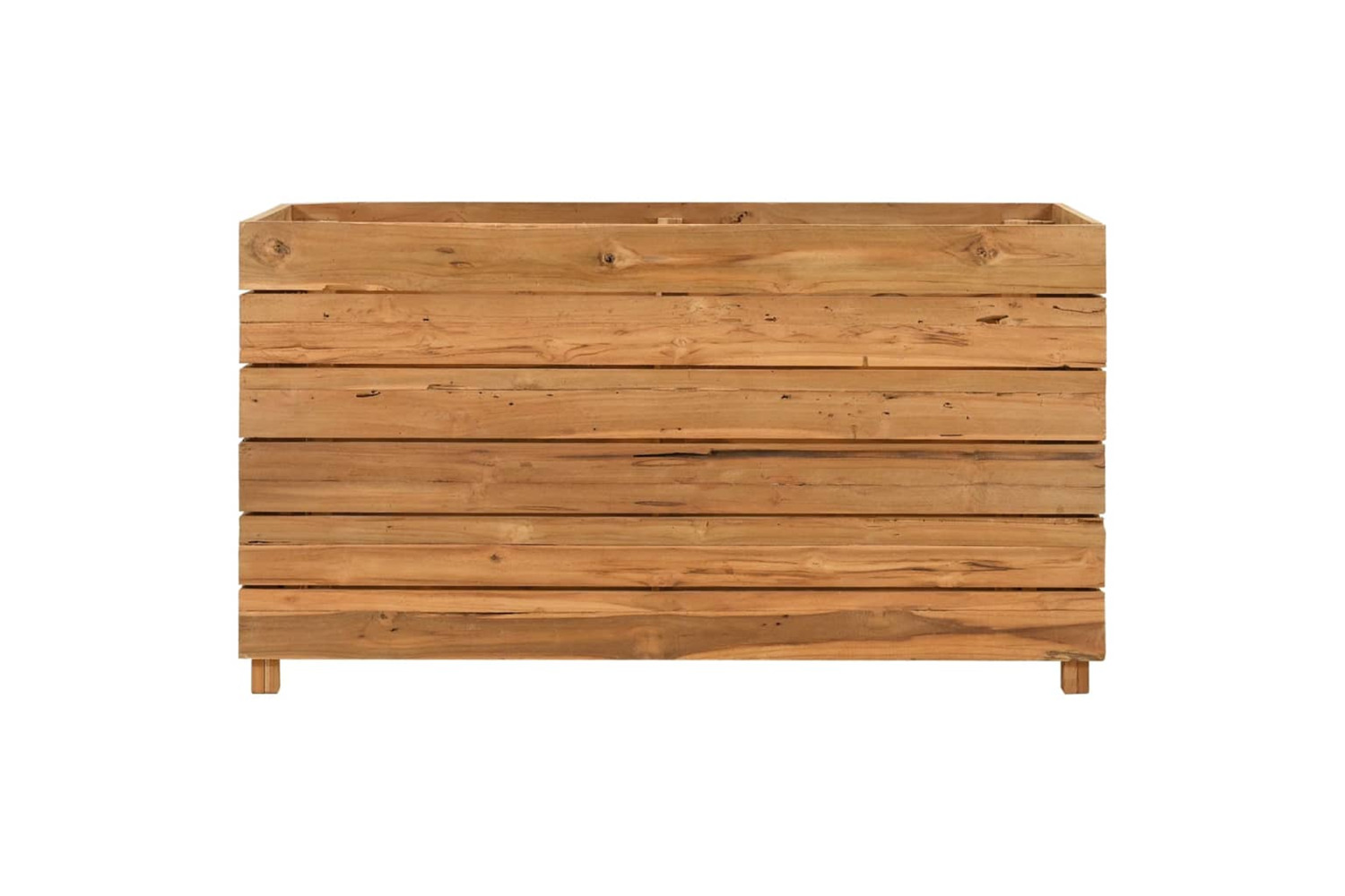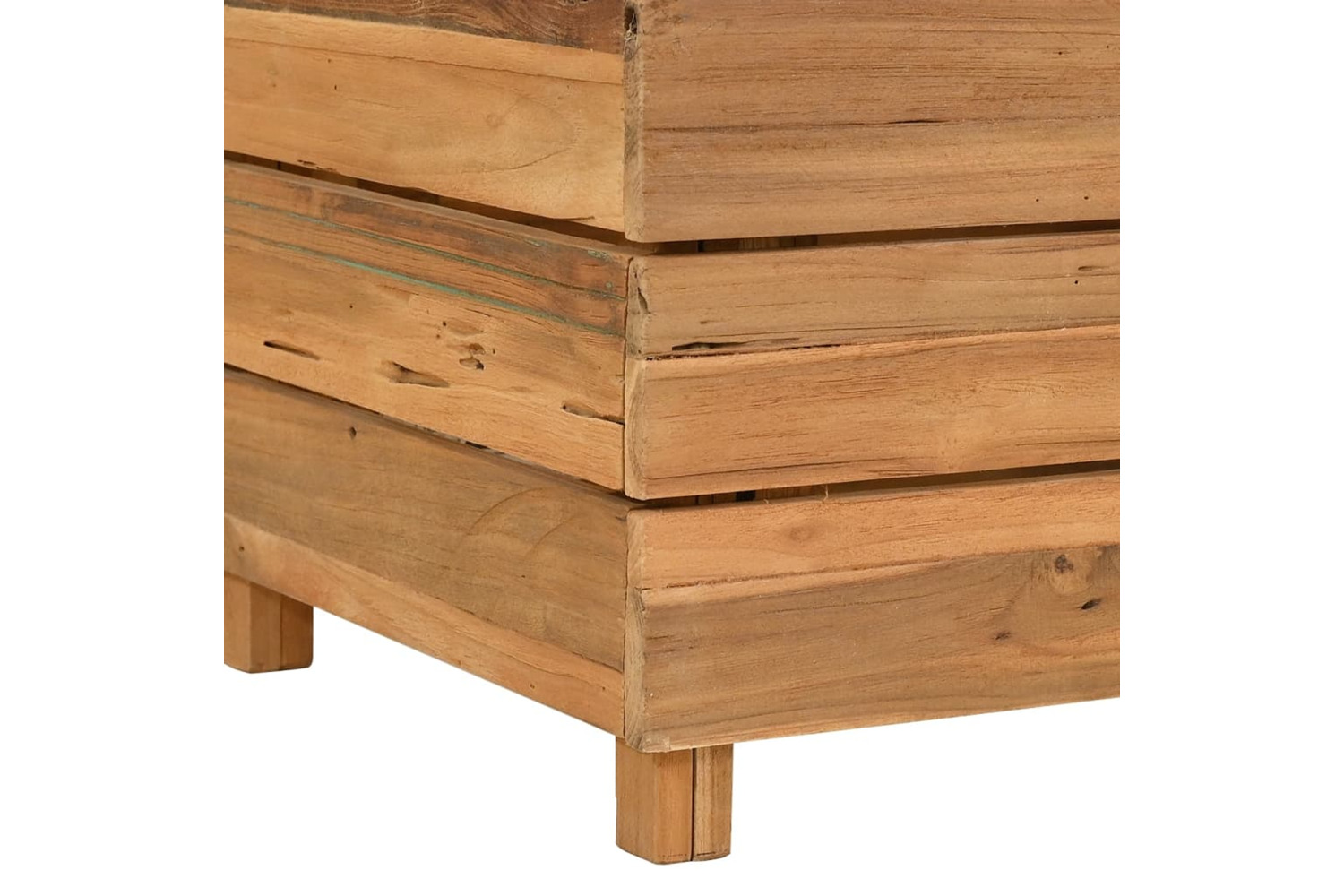 Made of recycled teak wood, this planter is very sturdy and durable. The beautiful wood grains make every piece of furniture unique and slightly different from the next. Four wooden legs at the bottom enhance extra stability. The bottom of the planter is equipped with a steel rack to put flower pots on. Additionally, the item is easy to assemble.