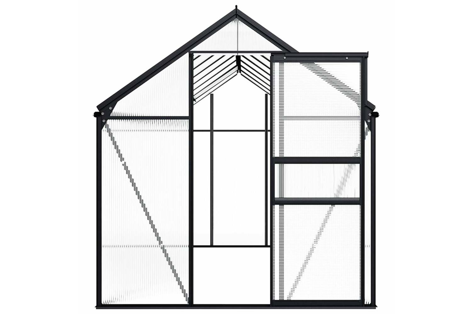 Made of polycarbonate panels, this solid greenhouse is UV resistant and thermally insulated. The greenhouse has a sturdy and maintenance-free aluminum construction for extra stability. The gutter system effectively allows water drainage, and the roof vent ensures optimal ventilation on hot days. Roof panels are fixed with metal clips, ensuring its durability and long-term use. Our greenhouse is easy to assemble.
