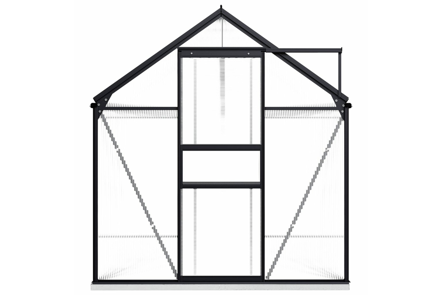 Made of polycarbonate panels, this solid greenhouse is UV resistant and thermally insulated. The greenhouse has a sturdy and maintenance-free aluminum construction with a base frame (made up of 4 strong profiles) for extra stability. The gutter system effectively allows water drainage, and the roof vent ensures optimal ventilation on hot days. Roof panels are fixed with metal clips, ensuring its durability and long-term use. Our greenhouse is easy to assemble.