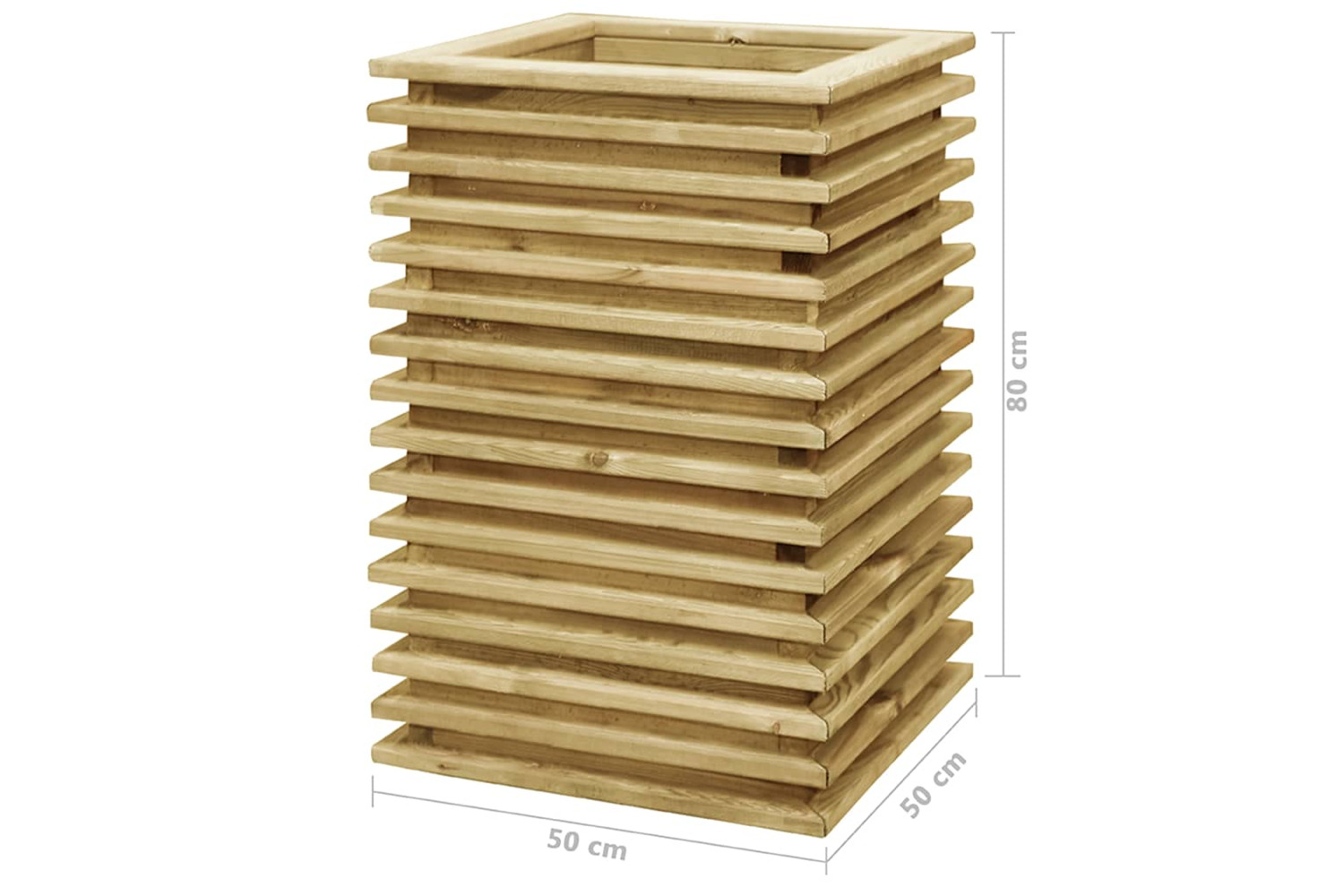 Made of solid impregnated pinewood, this garden planter is durable and weather resistant and therefore very practical for outdoor use all year around. The planter is deep and wide enough to hold a large amount of soil as well as provide ample space for your plants. The appearance adds to its rustic charm.