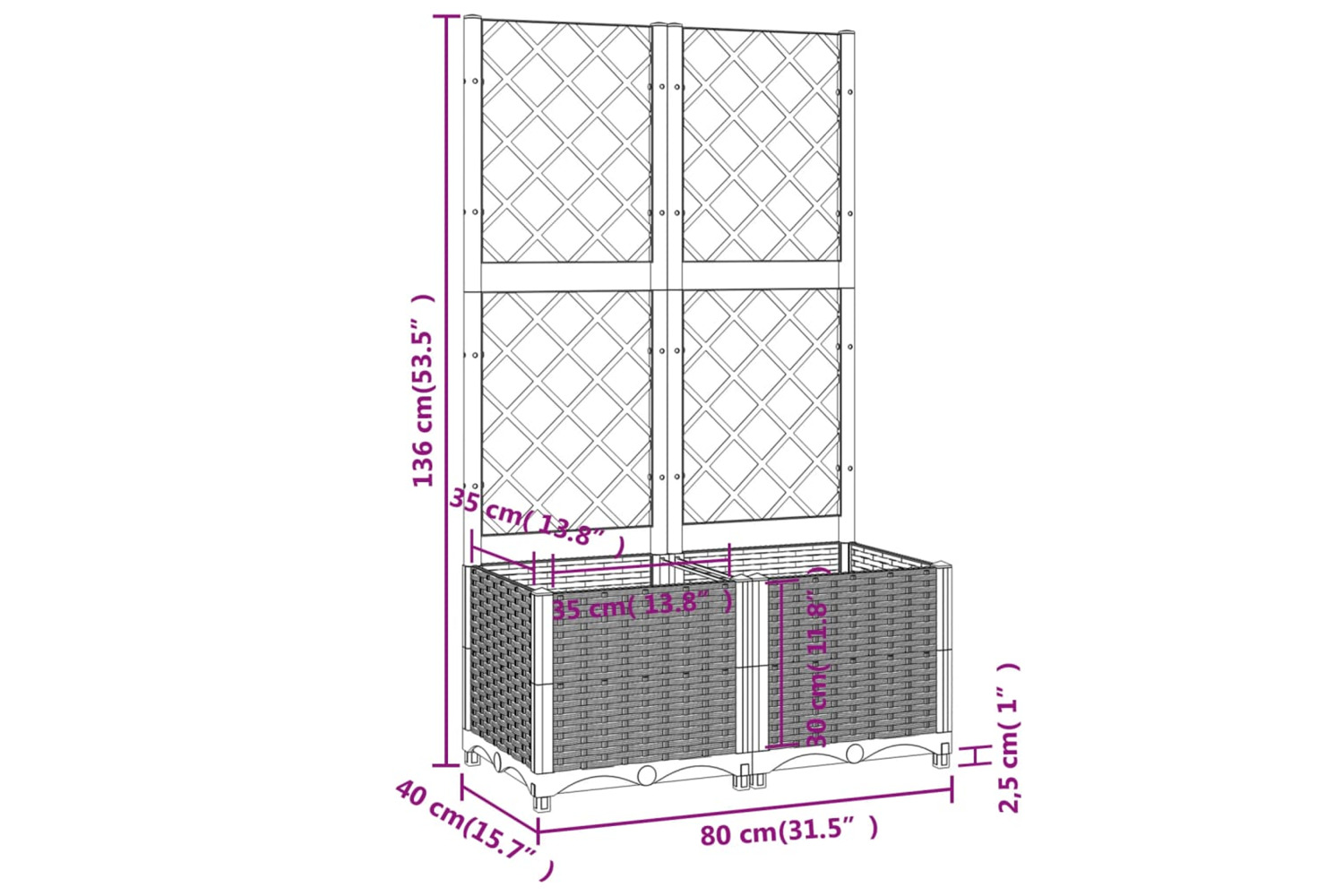 This planter is made of weather-resistant PP, strong and sturdy, and suitable for outdoor use. The bottom box can accommodate a large number of green plants and flowers. The integrated trellis offers great support for growing climbing plants such as tomatoes, peas, and roses.