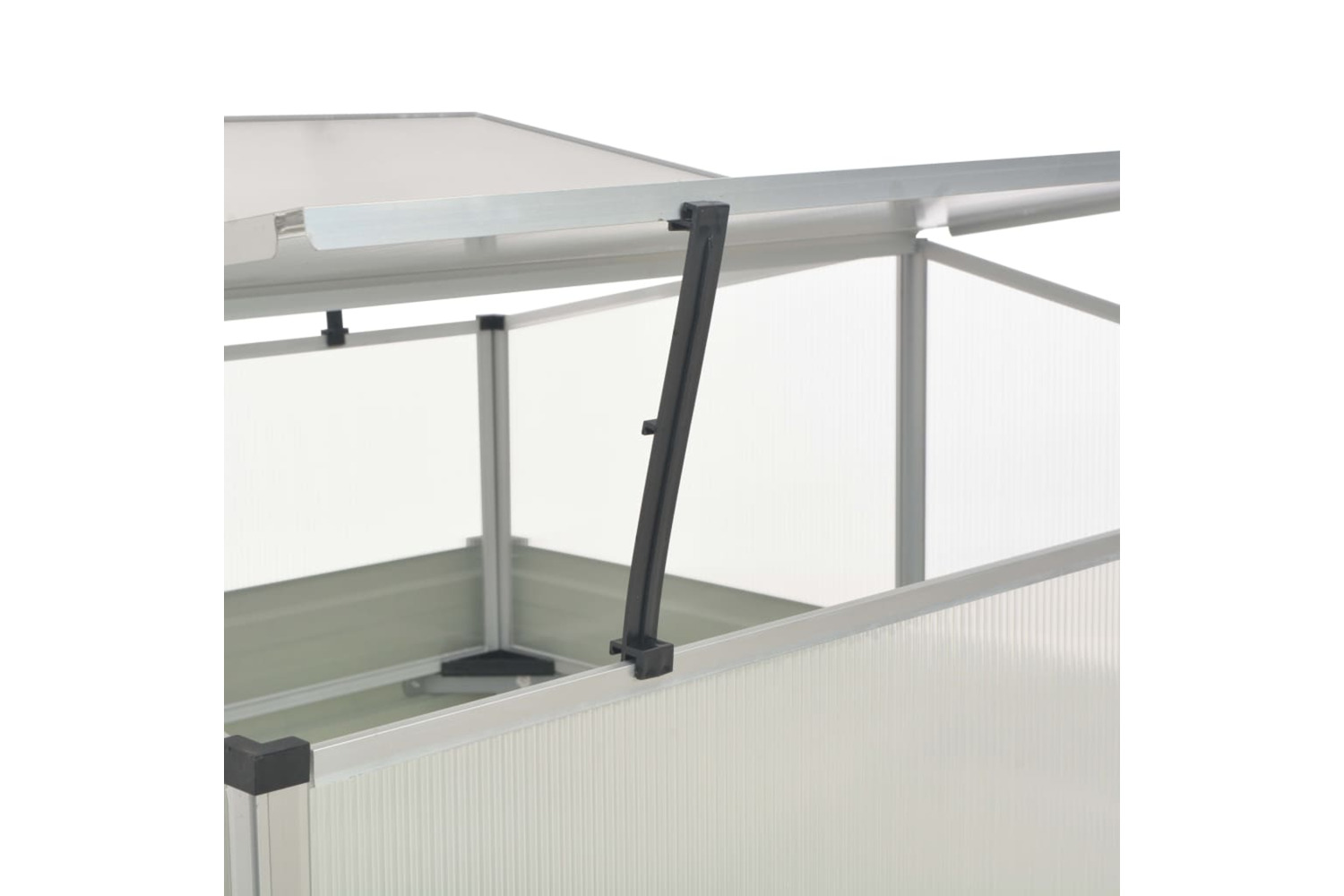 This spacious greenhouse can accommodate a considerable number of plants, which will be a great solution for protecting your plants from the cold weather. The top can be propped up for air circulation.