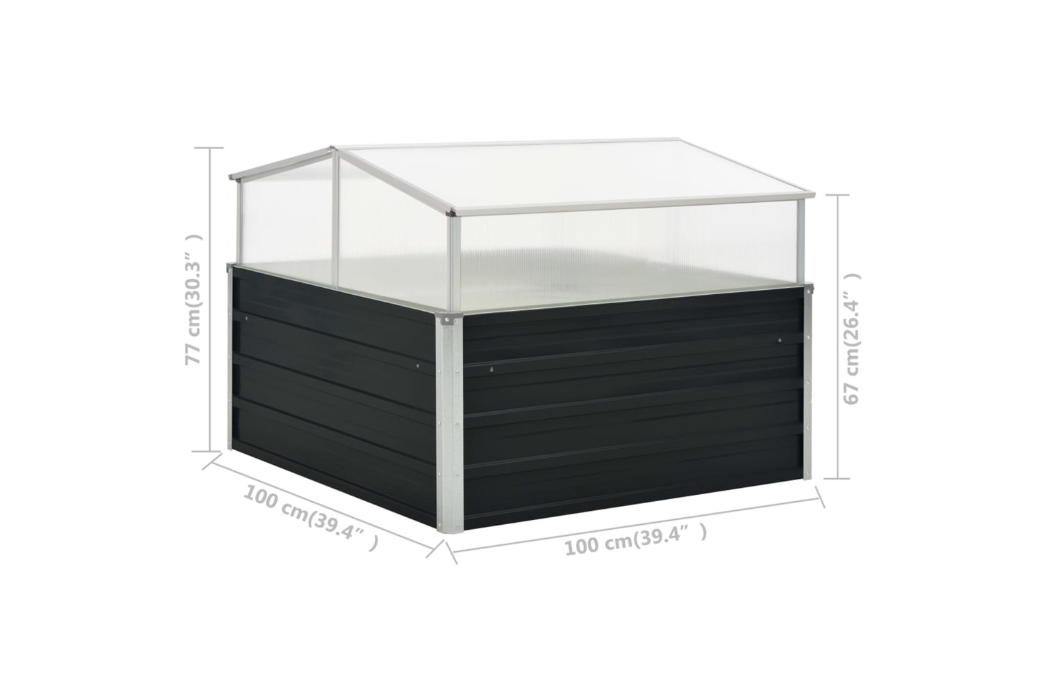 Made of PC board and galvanised steel, this garden greenhouse is extremely durable and beautifully made. It is deep and wide enough to hold a large amount of soil, as well as provide ample space for your plants, vegetables, herbs and flowers. Thanks to its simple square design, it will make a stylish addition to any balcony, deck or patio. Additionally, the rim of the planter base has an edge fold design so no dangerous sharp edges are exposed. The bottomless design provides good drainage for plants and prevents water buildup that causes the roots of plants to rot. It also allows plants to better absorb nutrients. You can place it on soil, grass, or concrete floors. The product is easy to assembly. Please note the roof of our greenhouse cannot withstand heavy snowfall.