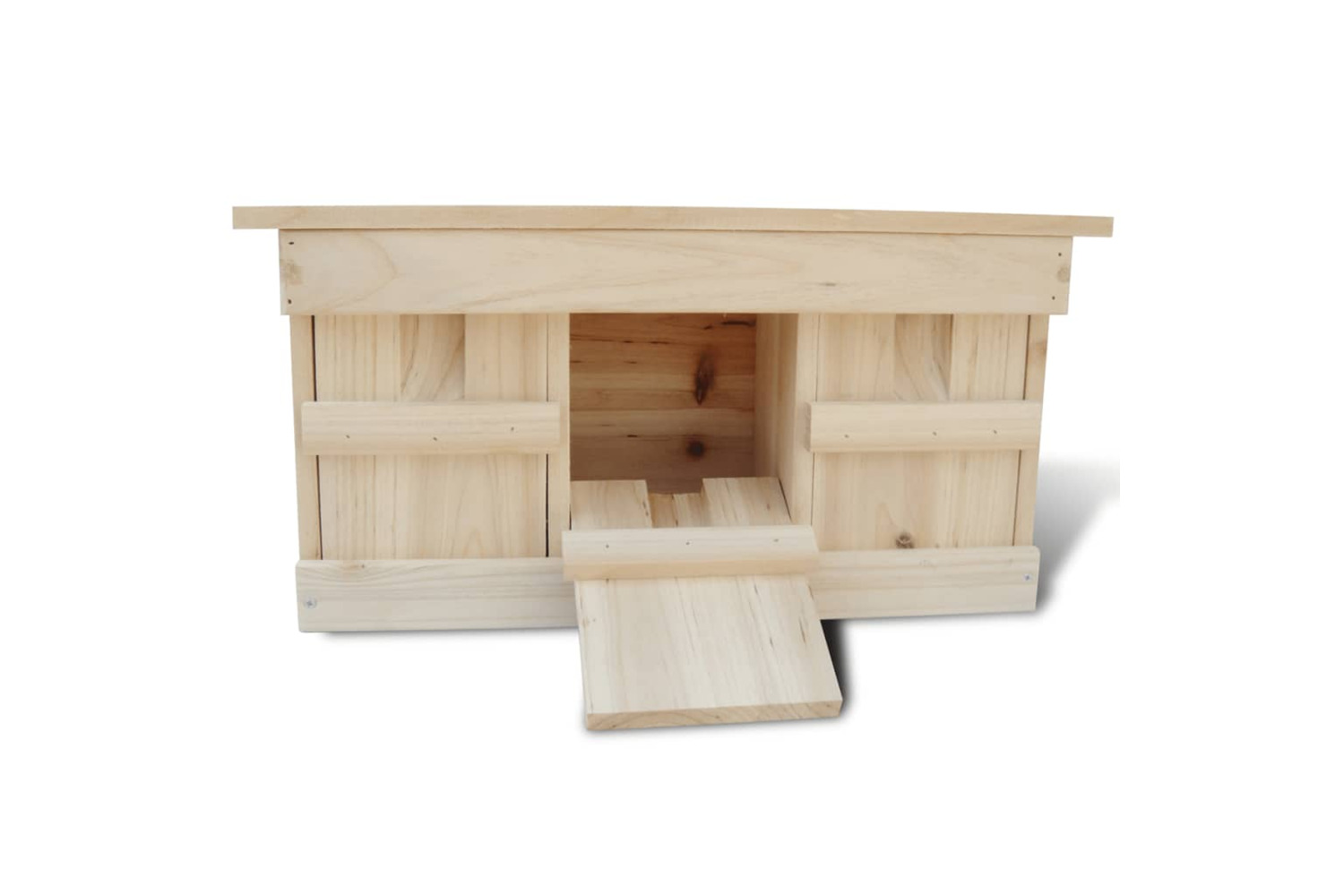 The housing has a natural wood colour, and it will be a perfect ornament as well as a warm and safe bird nest. This bird house has 3 chambers which can accommodate 3 breeding pairs to raise their chicks. Each chamber has a removable front door for easy cleaning. Equipped with metal hangers, the bird house is ready to be mounted in your garden.