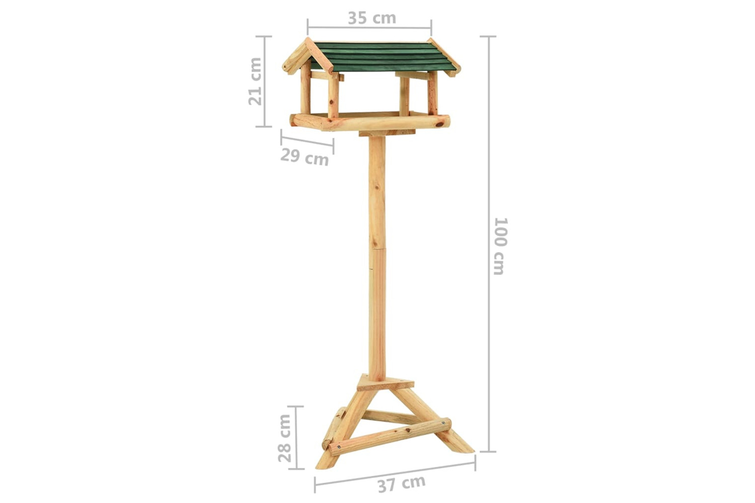 The feeder, made of solid fir wood, is durable, weather-resistant and can be used all year round. The feeding station is open on the sides, making it convenient to fill the food. The large platform provides a place for birds to eat and rest as well. The protective roof keeps the food dry. Additionally, the tripod feet keeps the feeder stable on the ground.