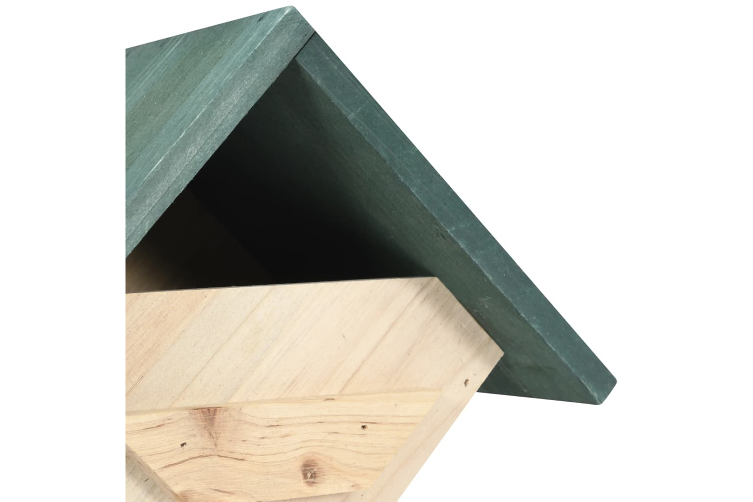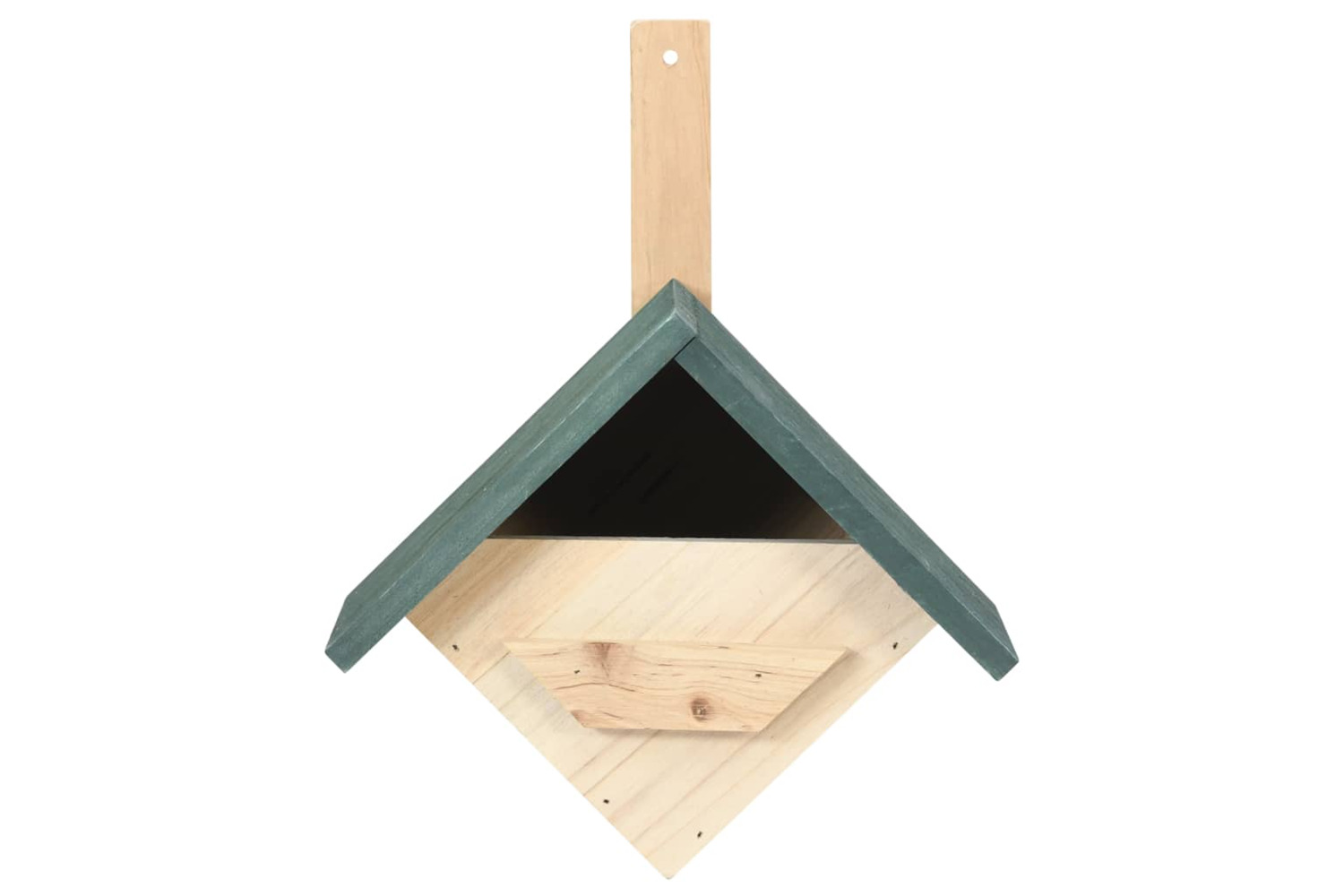 This bird nesting box is handmade from solid firwood, making it durable and suitable for outdoor use. This birdcage comes with a green roof and natural wood housing with a diamond shape. It is also a perfect ornament as well as a bird nest. With the pre-drilled holes at the top, the wooden aviary can be easily hung in your garden.