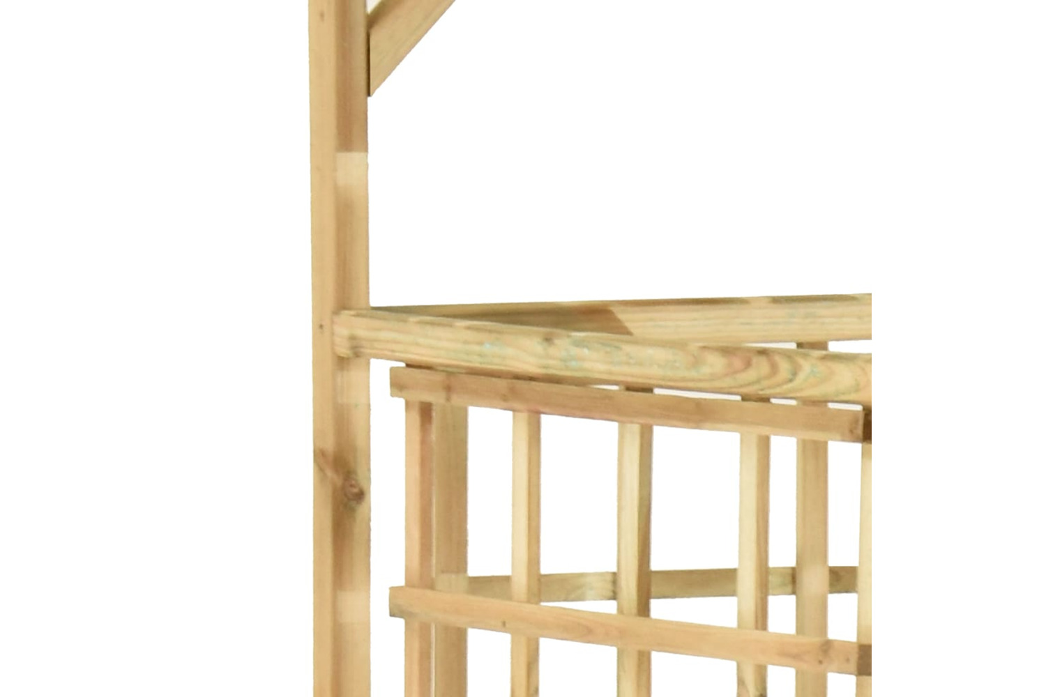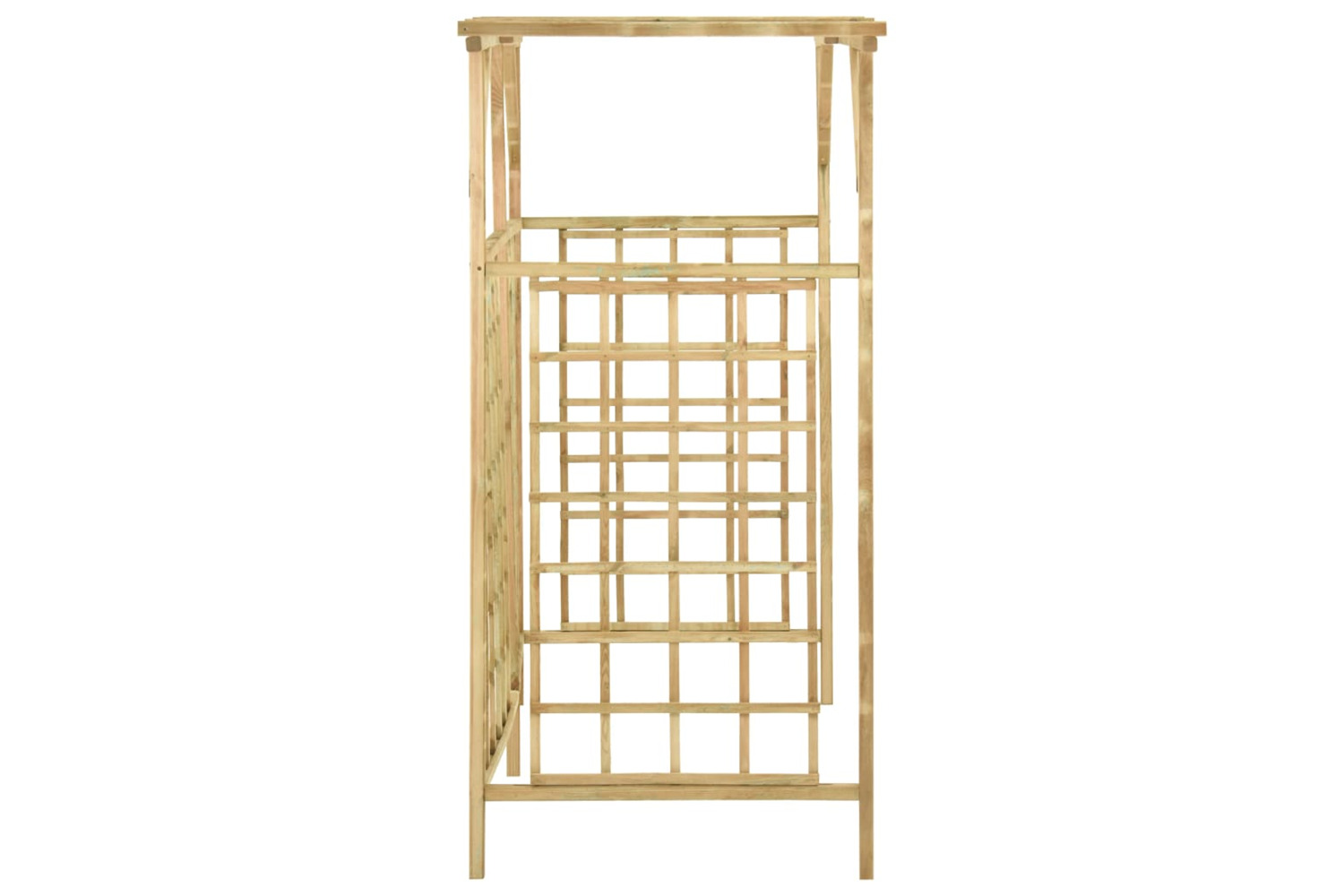 This wooden planter is made of green impregnated pine wood, making it very sturdy, durable and rot-resistant. The built-in trellis forms great support for roses or other climbing plants. This garden pergola is suitable for placing 3 bins, and it provides a beautiful background.