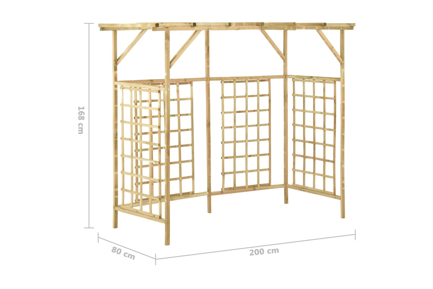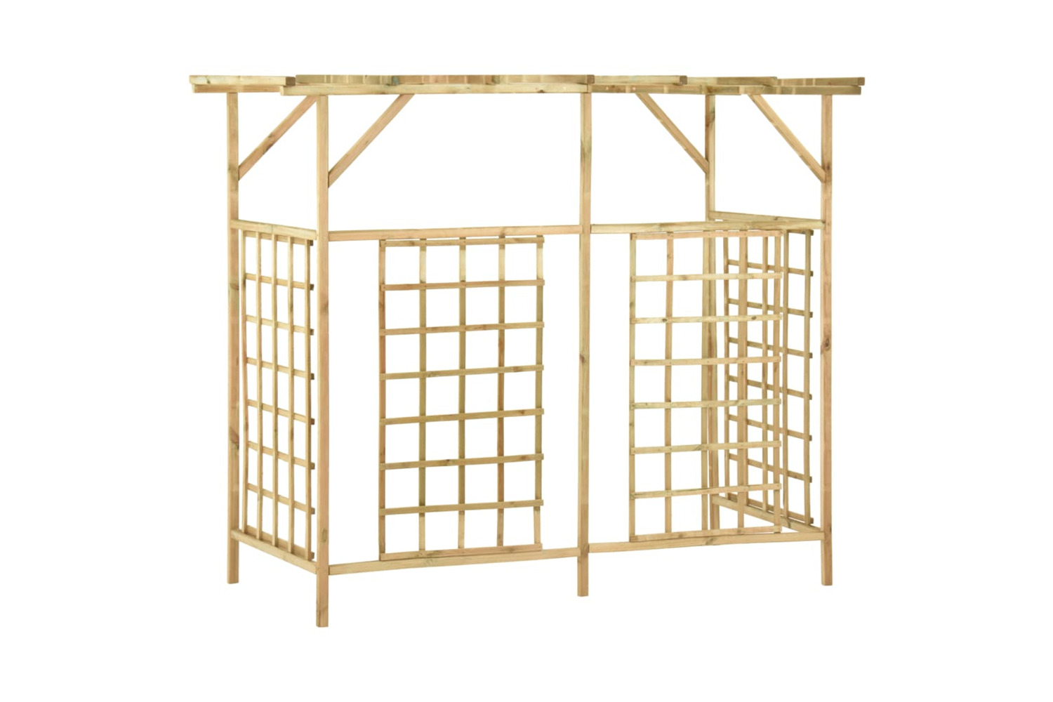 This wooden pergola for triple bins makes a perfect decorative addition to your garden or any outdoor space.