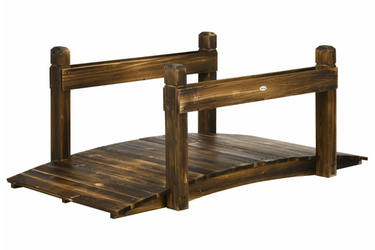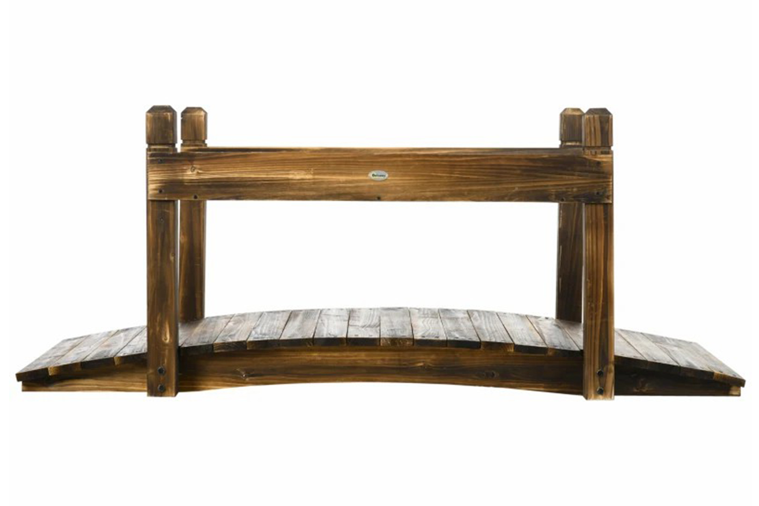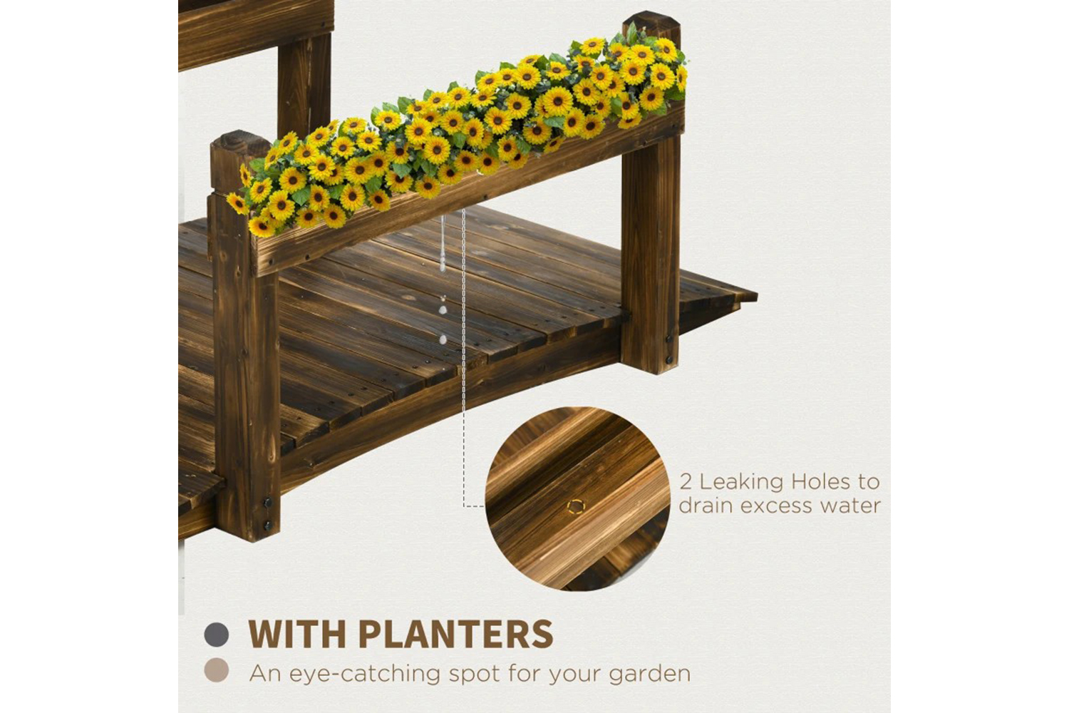 The Outsunny wooden garden bridge with planters is perfect for use as charming landscape decor in a backyard garden, near a pond, or over a small stream. Made of solid fir wood with stained finish to resist rot, cracking, and splitting, the pond bridge is both wonderful looking and long-lasting. The elegant traditional design is sure to be the centerpiece of your landscaping and a place where you can pause and reflect on the beauty of nature. Add a unique piece to your beautiful garden.