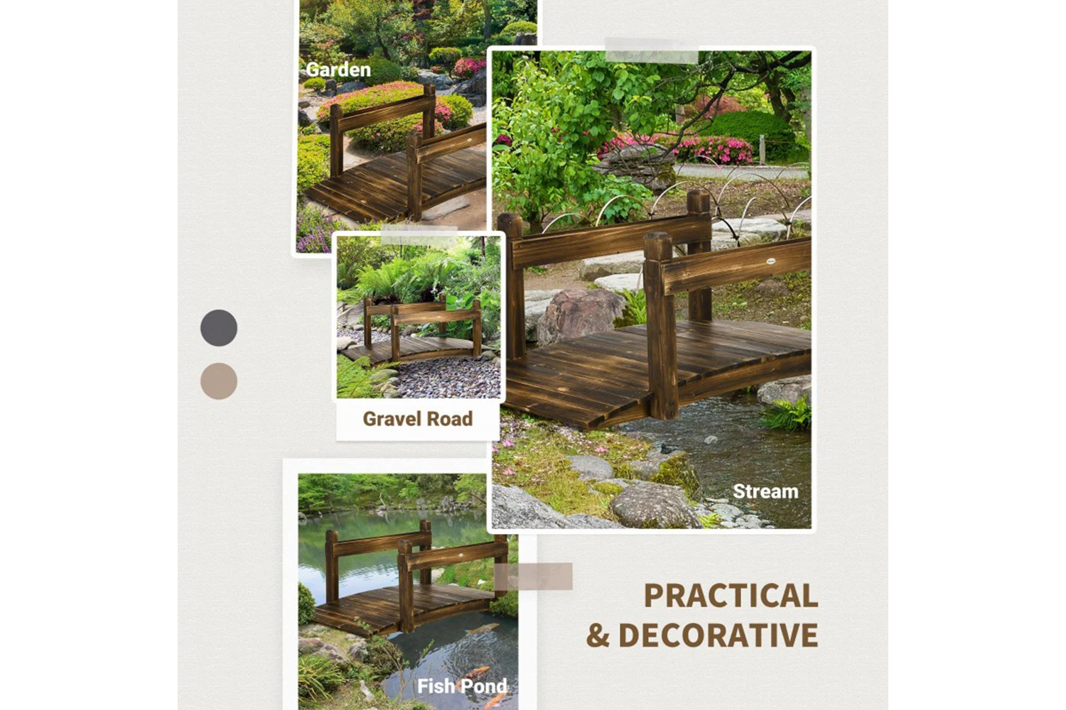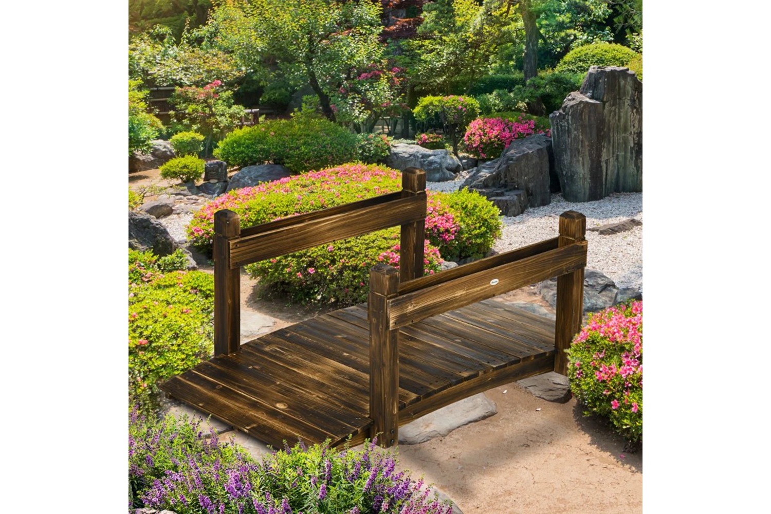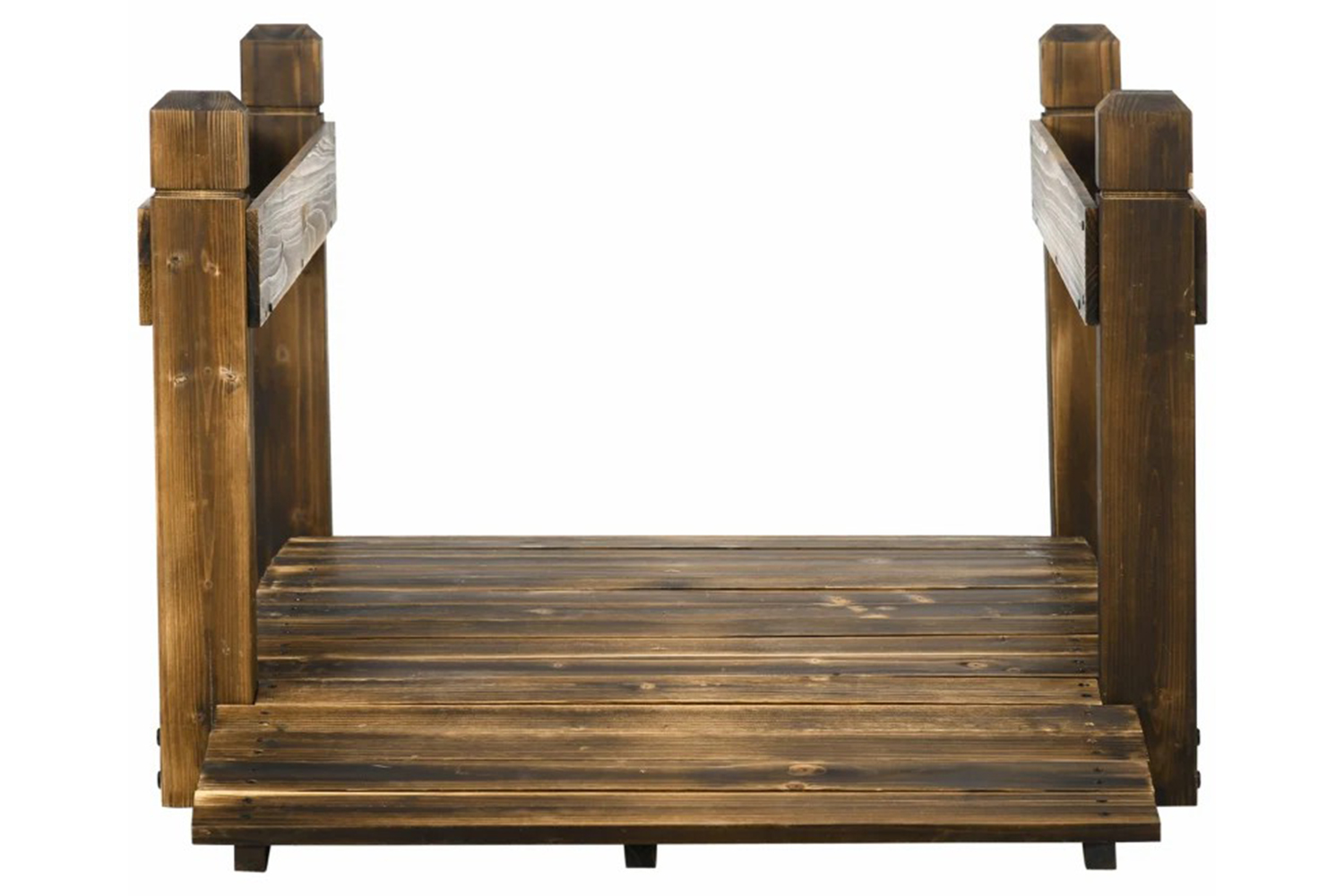 The Outsunny wooden garden bridge with planters is perfect for use as charming landscape decor in a backyard garden, near a pond, or over a small stream. Made of solid fir wood with stained finish to resist rot, cracking, and splitting, the pond bridge is both wonderful looking and long-lasting. The elegant traditional design is sure to be the centerpiece of your landscaping and a place where you can pause and reflect on the beauty of nature. Add a unique piece to your beautiful garden.