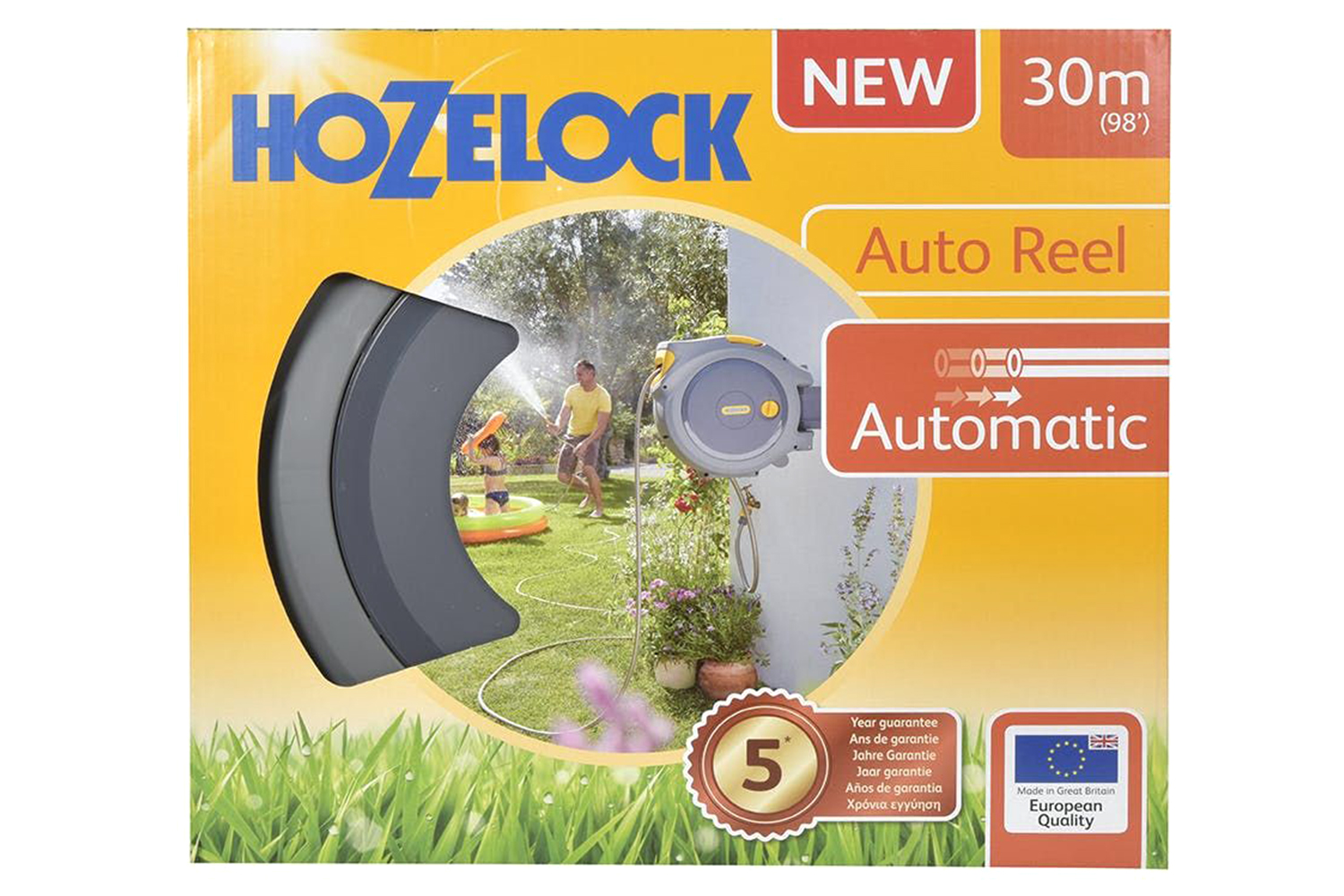 • The Auto Reel contains 30m of hose and a handy storage solution which rewinds the hose automatically, making watering easier than ever