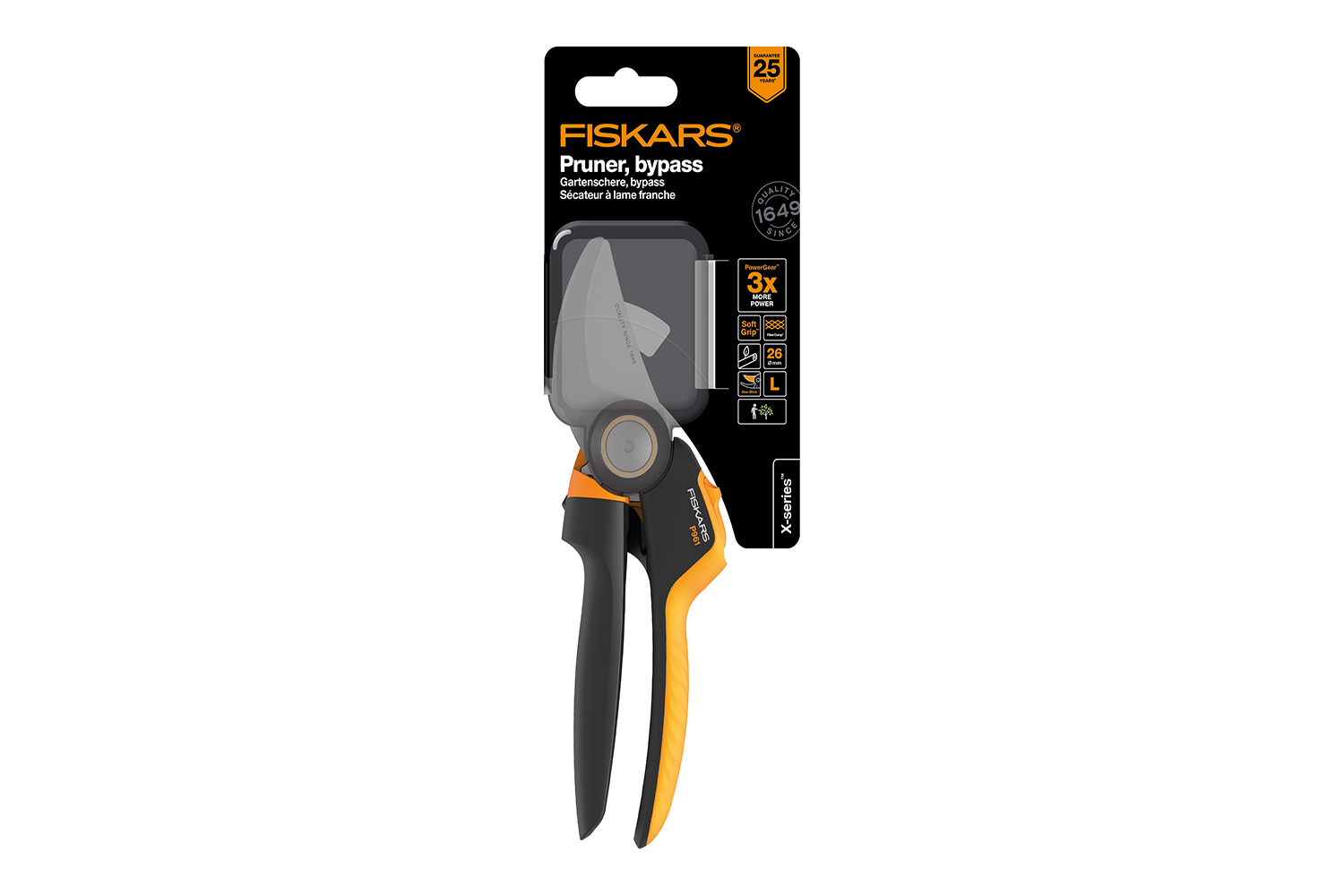 This ergonomic bypass pruner features PowerGear technology that maximizes leverage where you need it most, giving you 3x more cutting power through tough, thick stems and branches. A fully hardened, precision-ground blade stays sharp longer, while a low-friction blade coating resists rust and allows for smoother, easier cuts.