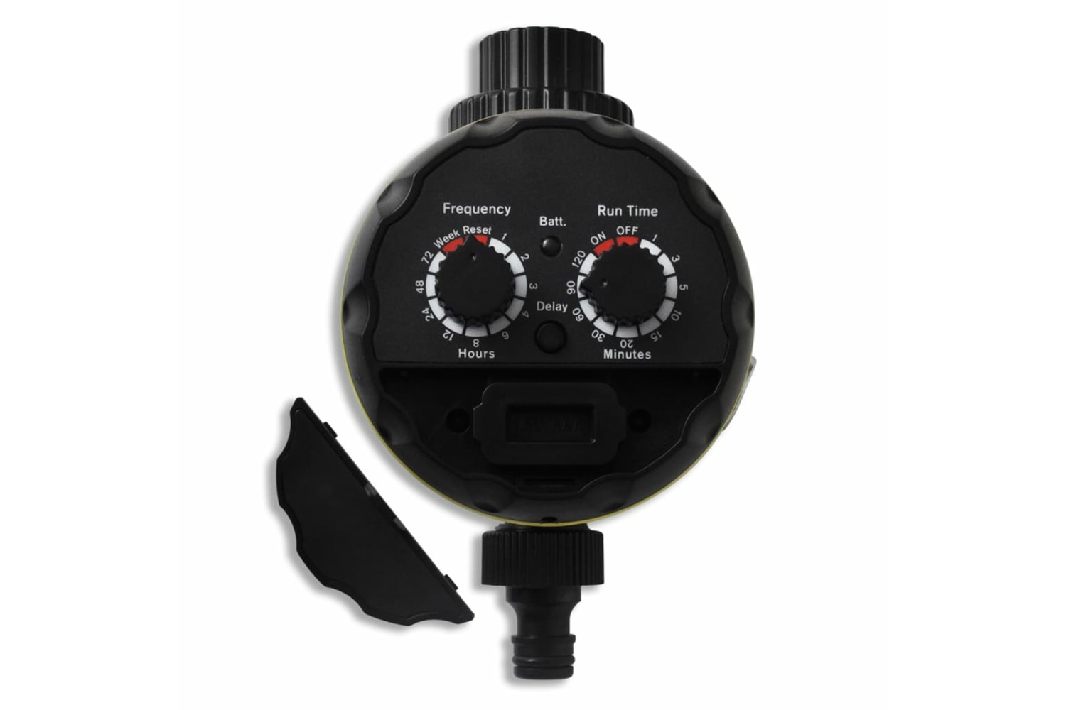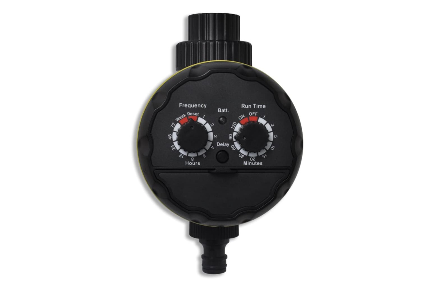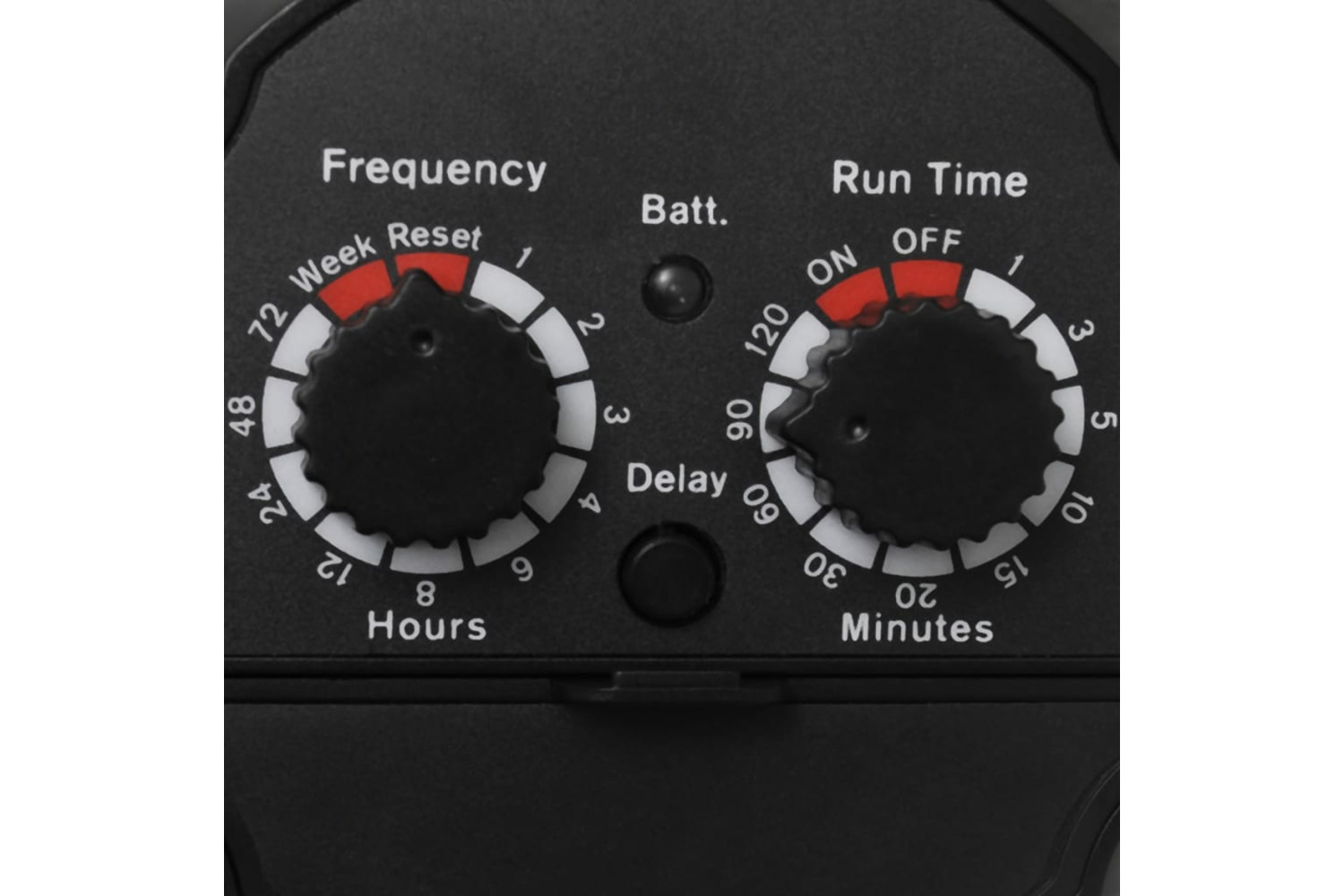 Featuring an automatic watering system, this garden automatic water timer is designed to save water and time. It can be easily set up with two dial wheels: one for cycle time and one for watering time. With its time delay function, you are able to let the irrigation time begin at any time you want.