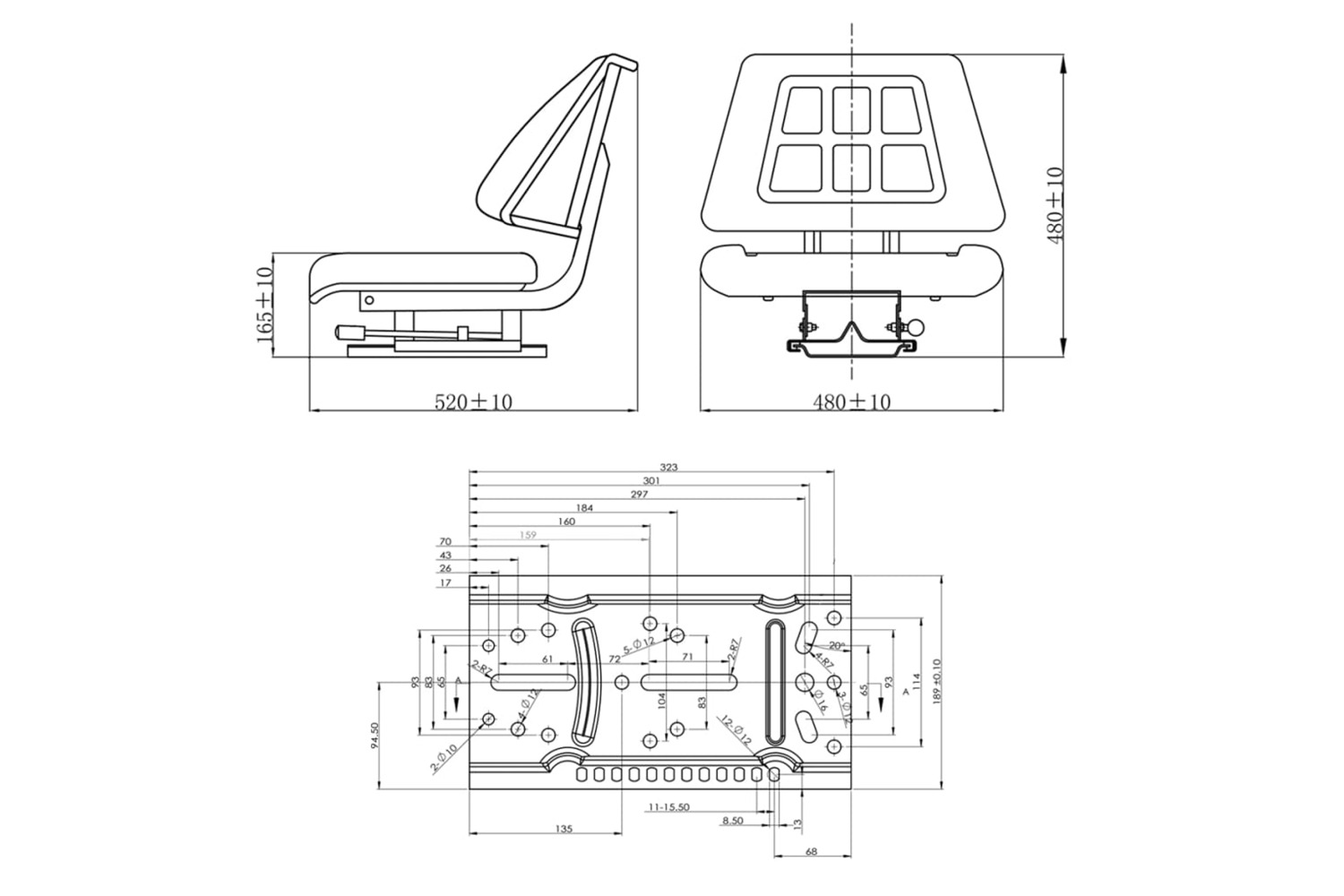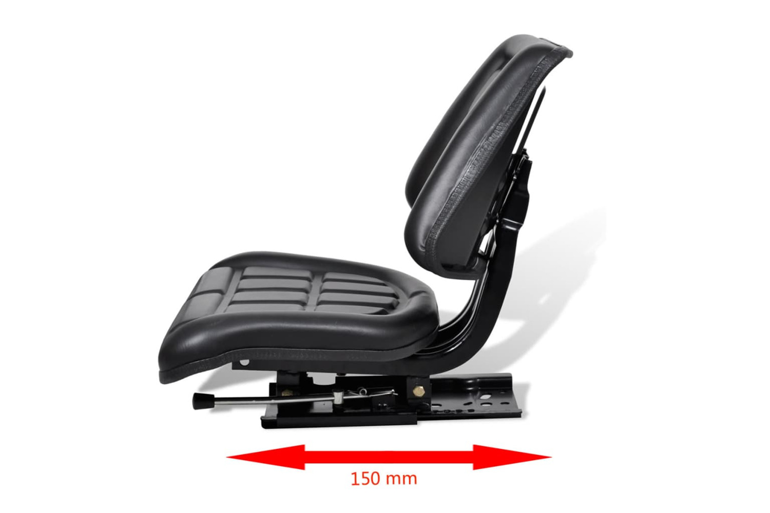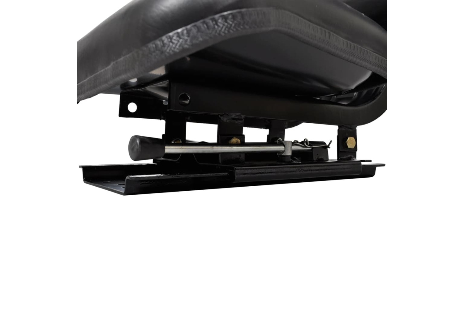 This high-quality tractor seat with backrest will provide you with increased comfort. Special foam is padded for more pleasant comfort. The tractor seat is equipped with sliding track for easy and flexible installation. A plurality of mounting holes on the base plate is designed for extra firmness. The black cover of the backrest tractor seat is very durable and waterproof. 150mm longitudinal adjustment provides more convenience and comfort.