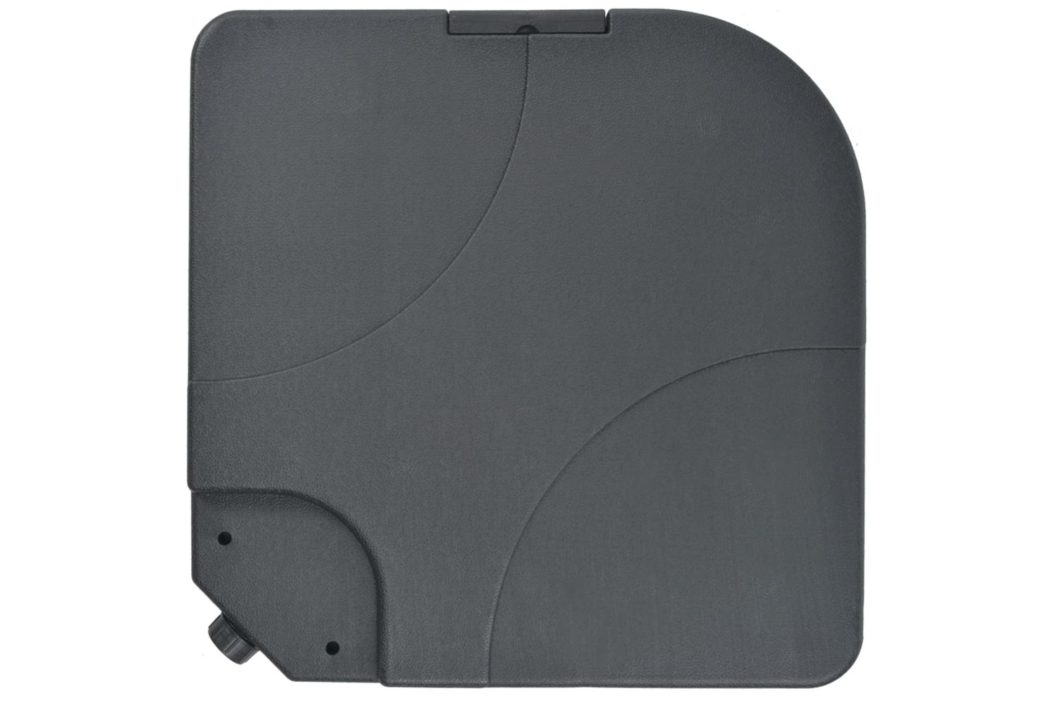 The extra parasol base consists of four separate parts and can be filled with 60 litres of water or 80 kg of sand. It is ideal for steadying parasols with a cross base. Pouring out the filler, the parasol base is light in weight, which makes it easy to carry.