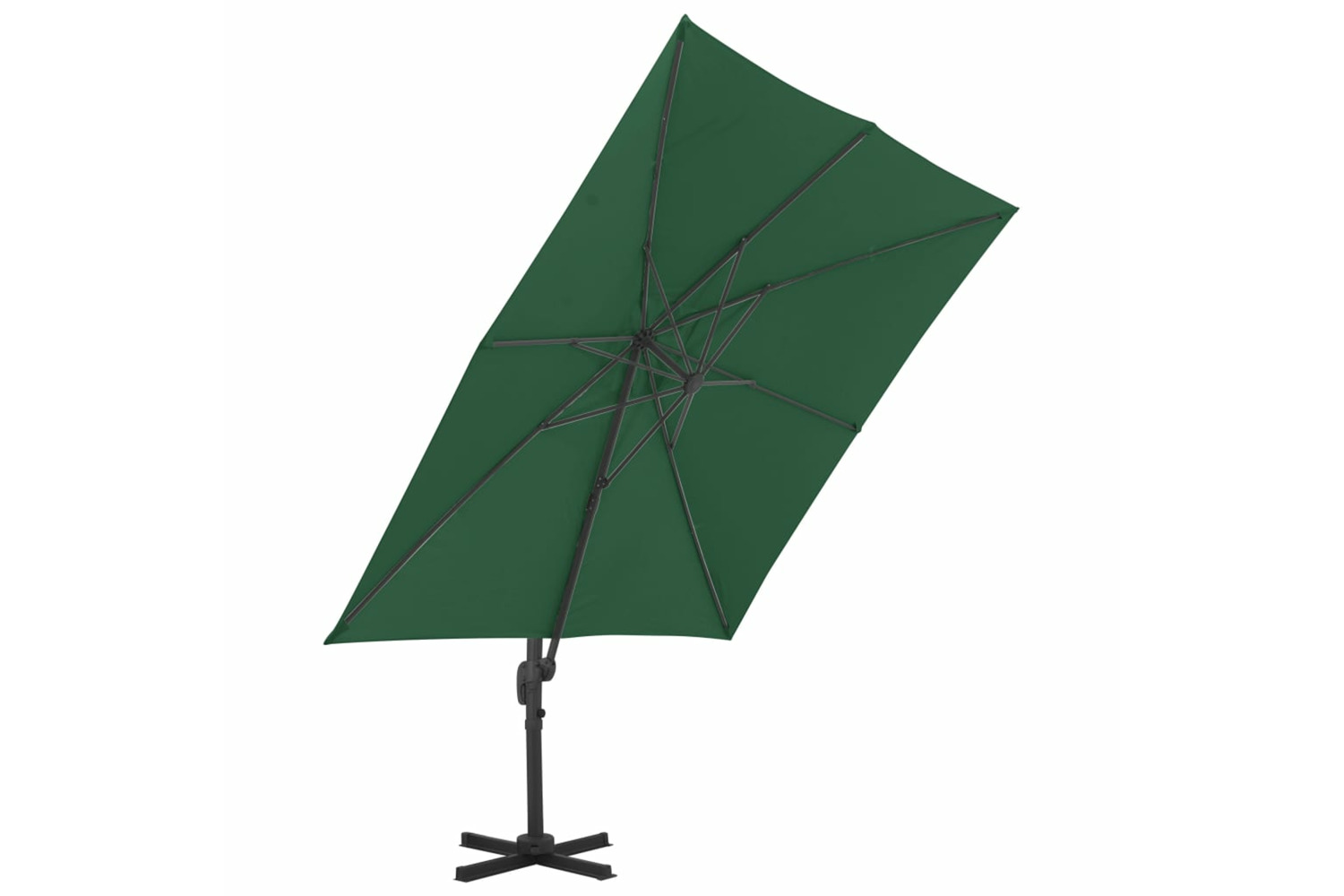 This garden umbrella can be easily opened and closed by simply turning the knob on the pole. The aluminium pole, along with the 8 sturdy aluminium ribs, makes the outdoor umbrella very durable. The exclusive design of this parasol allows you to tilt and rotate it in 360 degrees to block the sun. Moreover, the large, detachable steel cross base adds stability without taking up too much space.