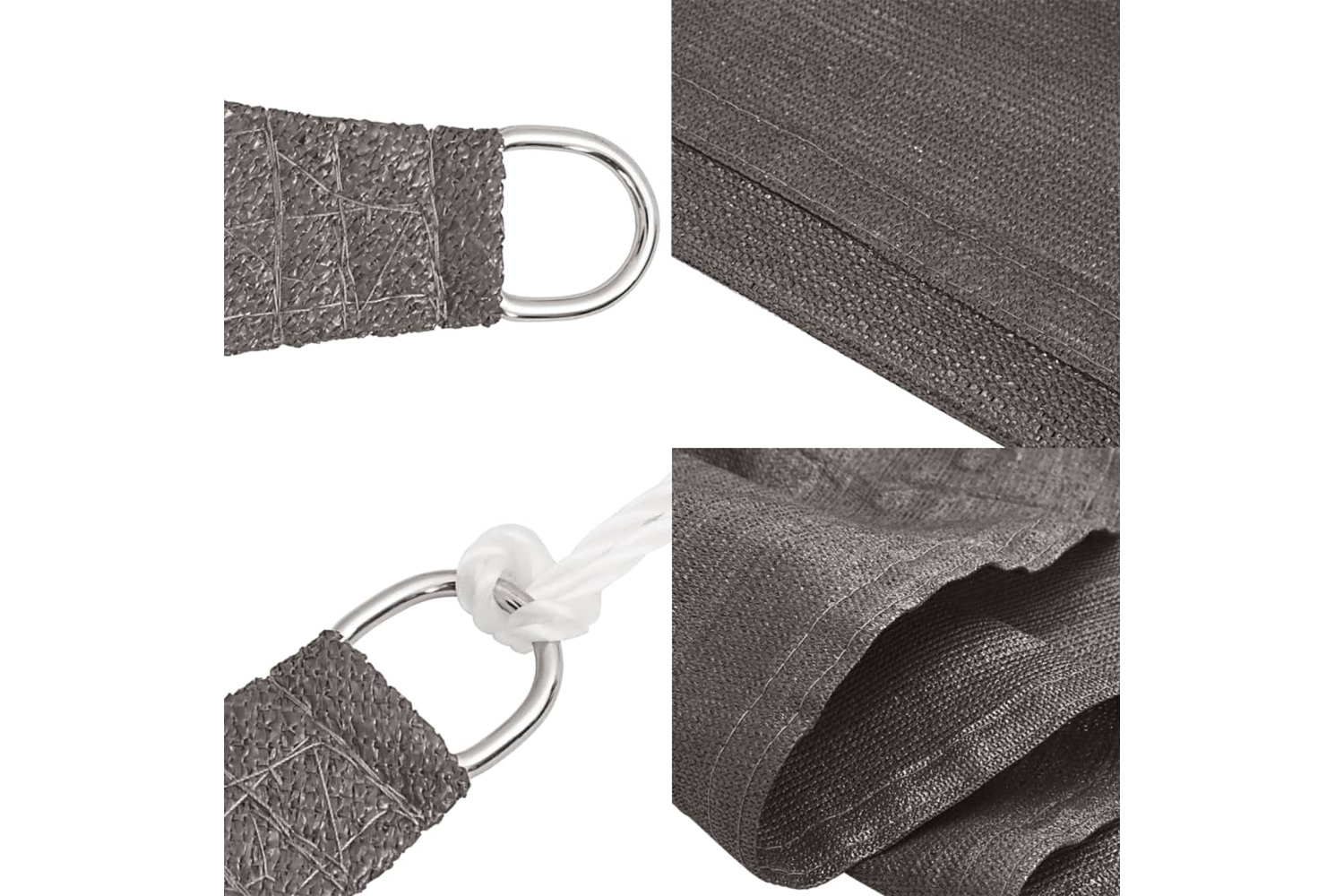 The sun sail, made from 100% HDPE (high-density polyethylene), protects you from direct sunlight, allows enough wind and is water permeable. The HDPE is specially treated, so it is mould resistant and UV-resistant. The sunshade is easy to assemble with the stainless steel fasteners at every corner and the included ropes.