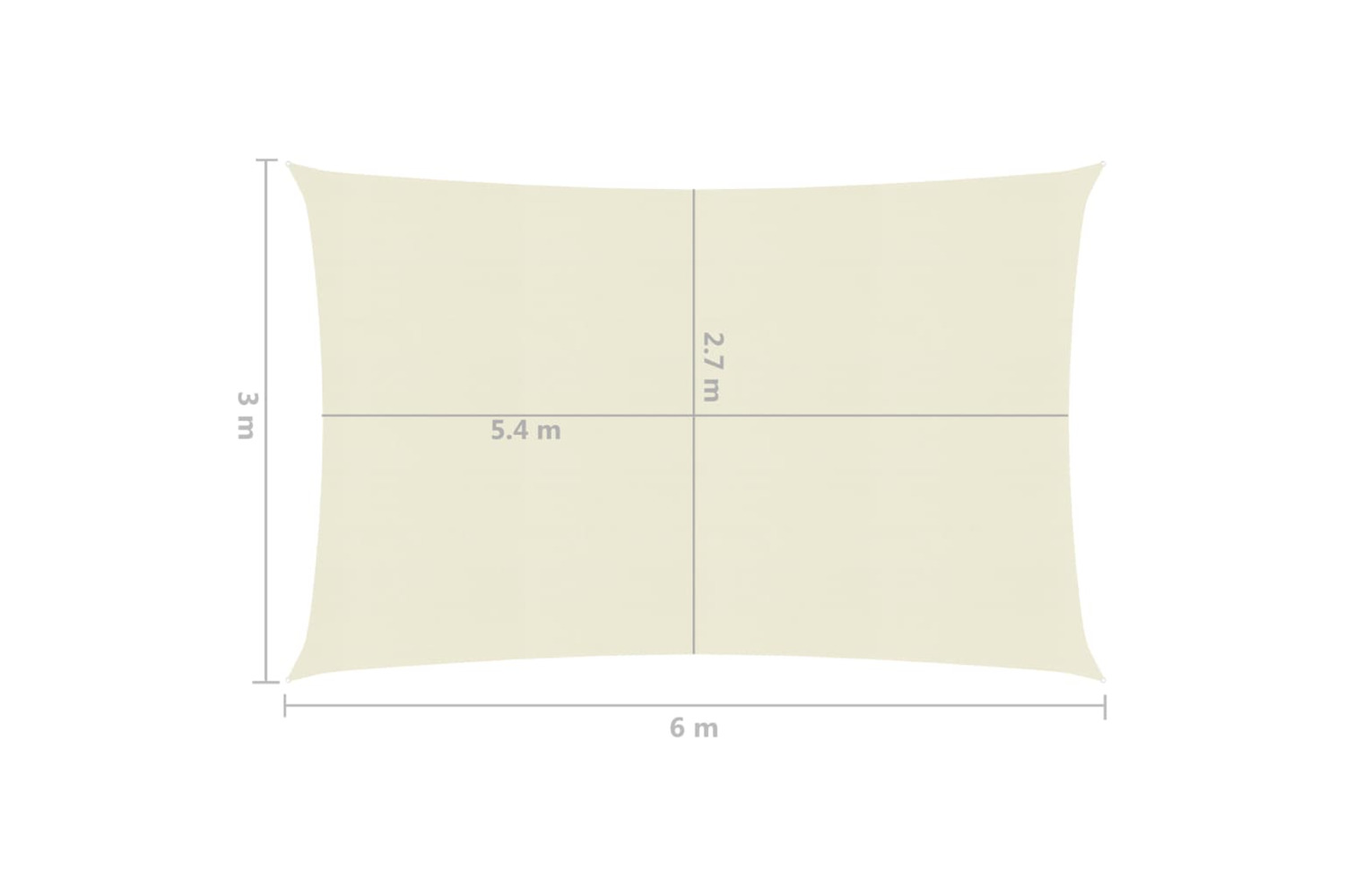 The sun sail, made from 100% HDPE (high-density polyethylene), protects you from direct sunlight, allows enough wind and is water permeable. The HDPE is specially treated, so it is mould resistant and UV-resistant. The sunshade is easy to assemble with the stainless steel fasteners at every corner and the included ropes.