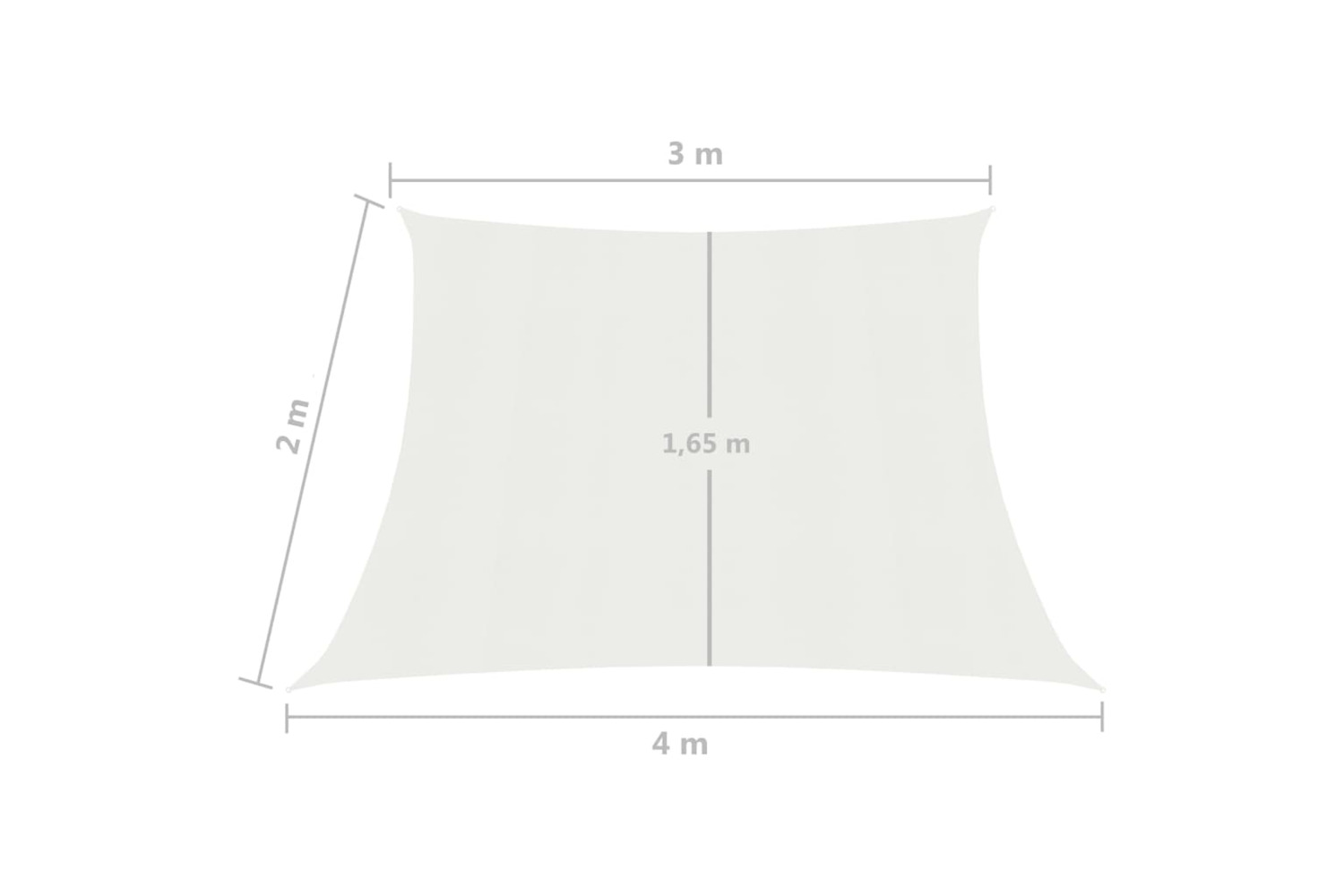 The sun sail, made from 100% HDPE (high-density polyethylene), protects you from direct sunlight, allows enough wind and is water permeable. The HDPE is specially treated, so it is mould resistant and UV-resistant. The sunshade is easy to assemble with the stainless steel fasteners at every corner and the included ropes.
