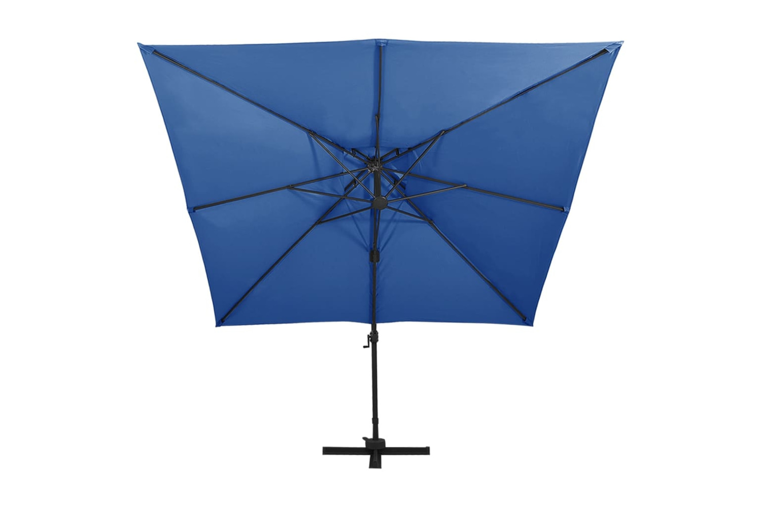 Made of UV protective and anti-fade polyester, the parasol cover provides you with optimum protection against the sun and is easy to clean. It features a sturdy cross base to add stability. The exclusive design of this parasol allows you to tilt and rotate it in 360 degrees to block the sun. The strong aluminium pole, along with the 8 ribs, makes the parasol very stable and durable. This garden umbrella can be easily opened and closed thanks to the crank mechanism. Additionally, the double-top design canopy helps ventilation.