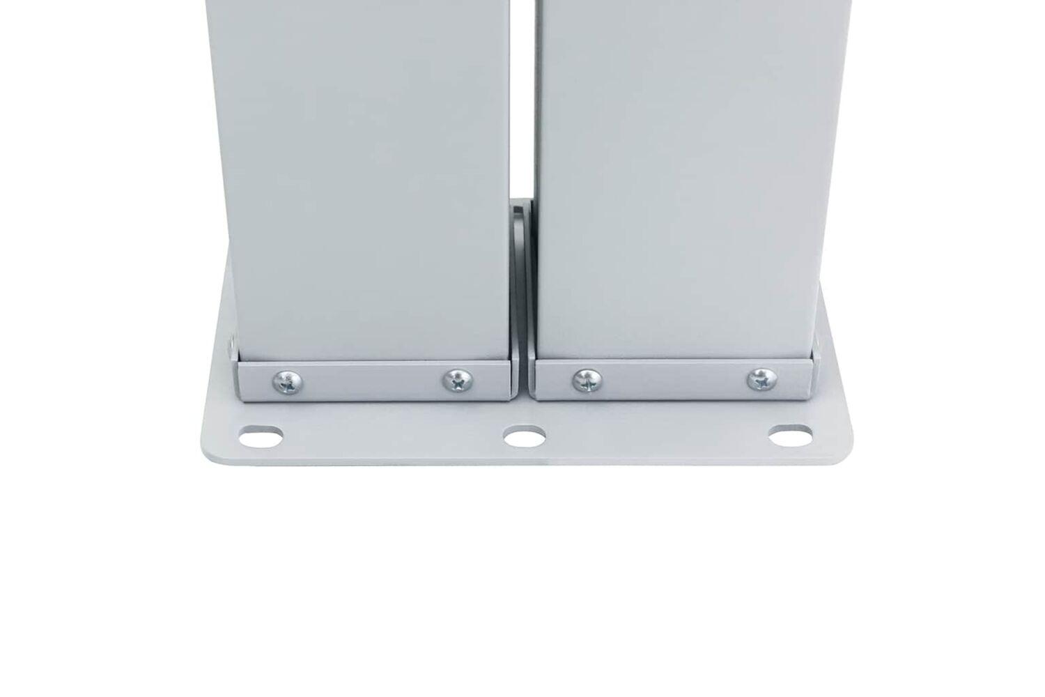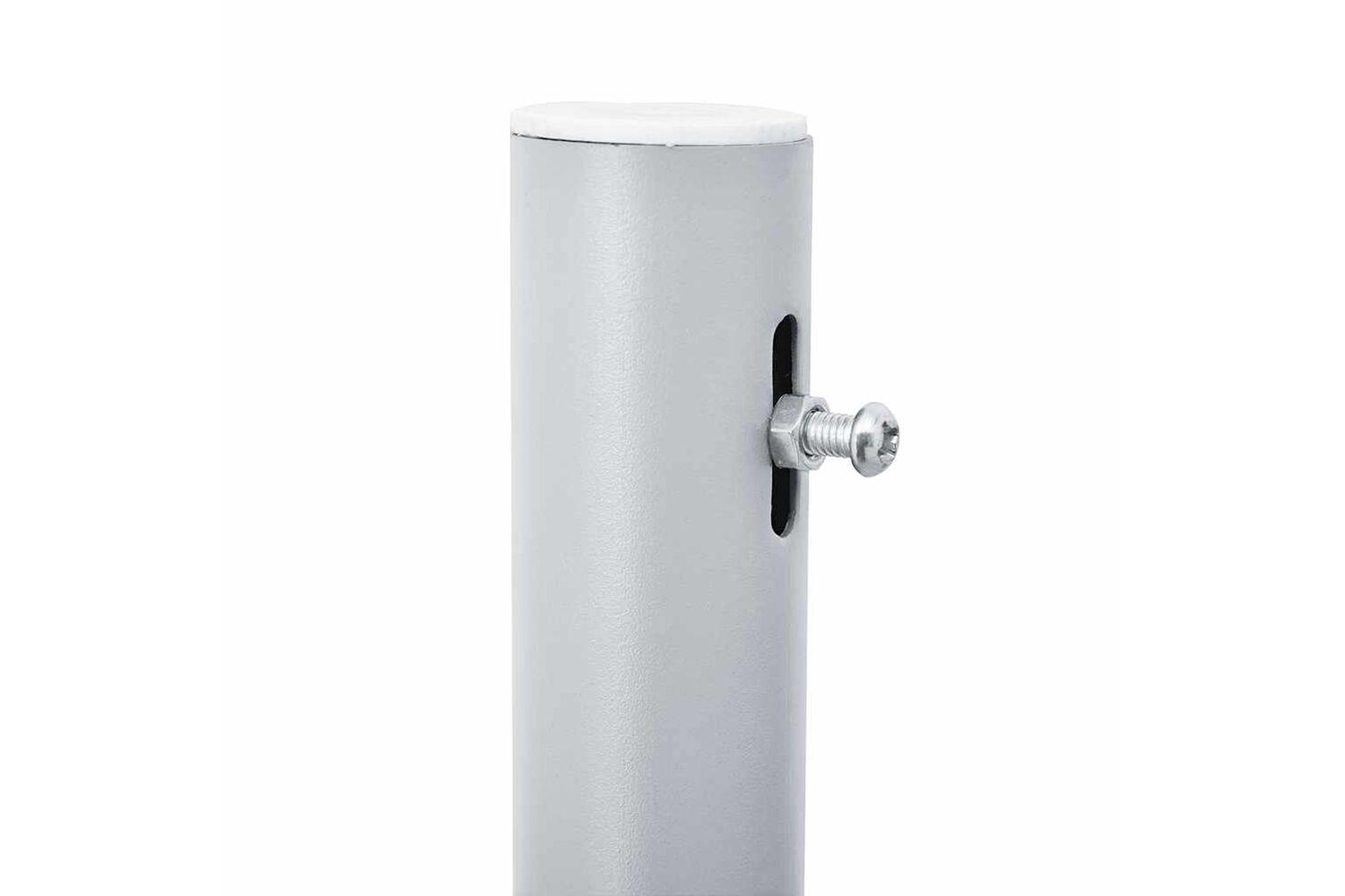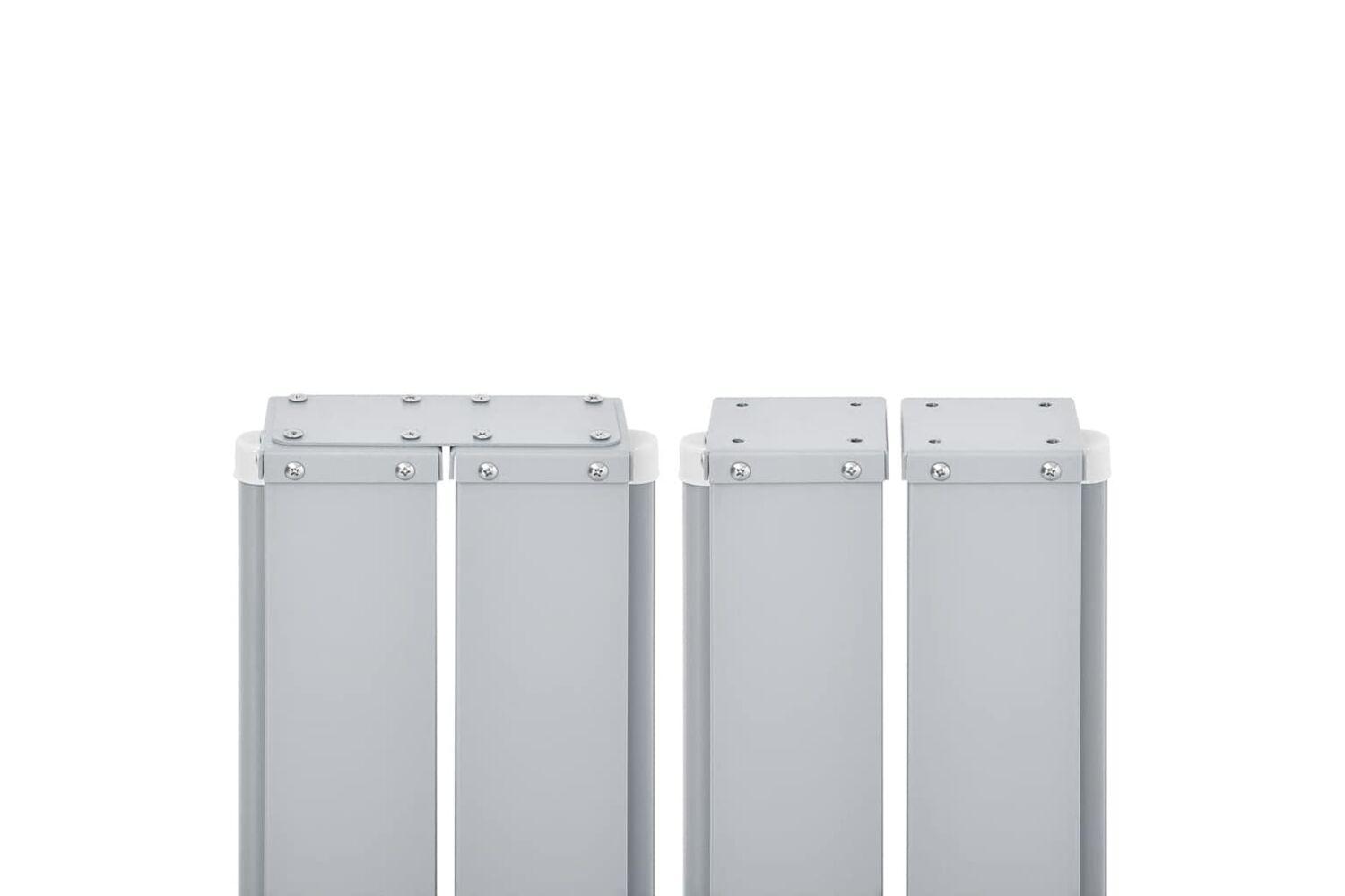 The screen is made of UV-resistant, water-resistant and tear-resistant polyester. The cassette is installed on a sturdy steel base in the vertical position, and the retractable awning can be pulled straight out easily. The awning features an automatic roll-back function. The delivery also includes mounting accessories.