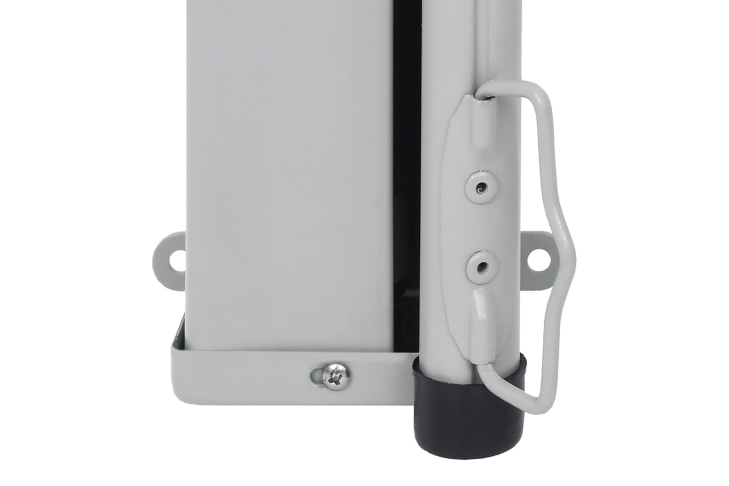 The screen is made of UV-resistant, water-resistant and tear-resistant polyester. The cassette is installed on a sturdy steel base in the vertical position, and the retractable awning can be pulled straight out easily. The awning features an automatic roll-back function. The delivery also includes mounting accessories.
