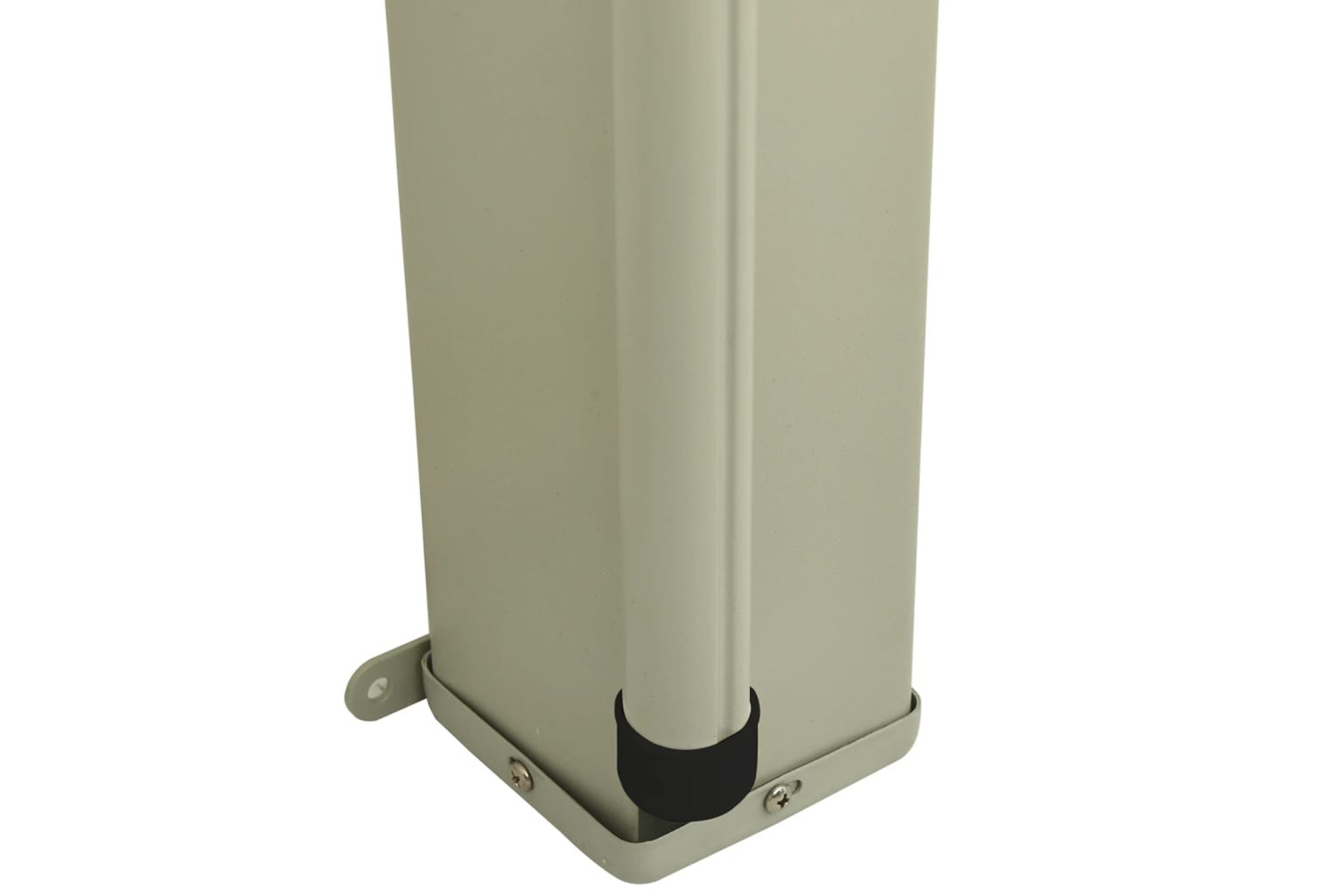 The screen is made of UV- and tear-resistant polyester. The cassette is installed on a sturdy iron base in the vertical position, and the retractable awning can be easily pulled straight out. The awning also has automatic roll-back function.