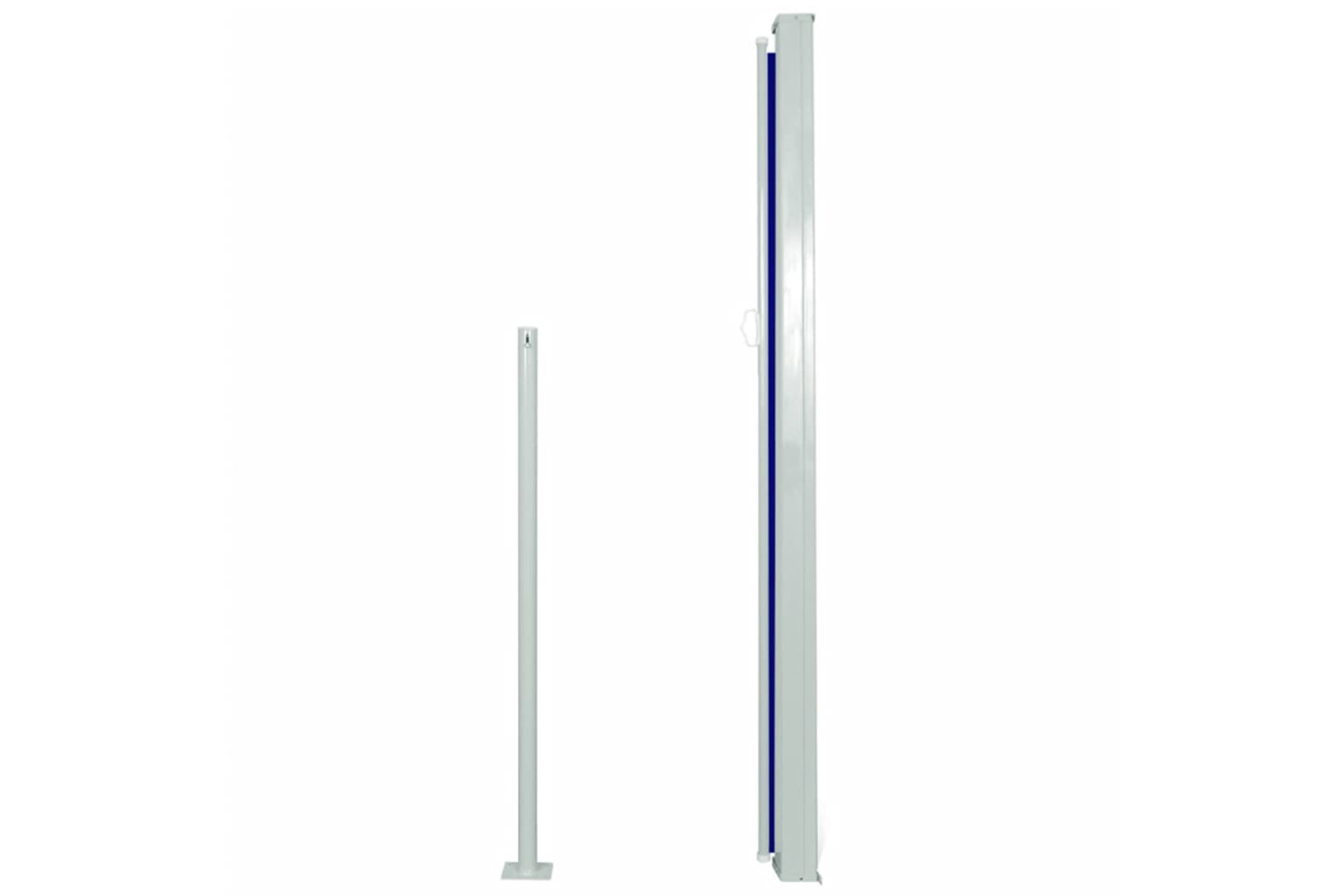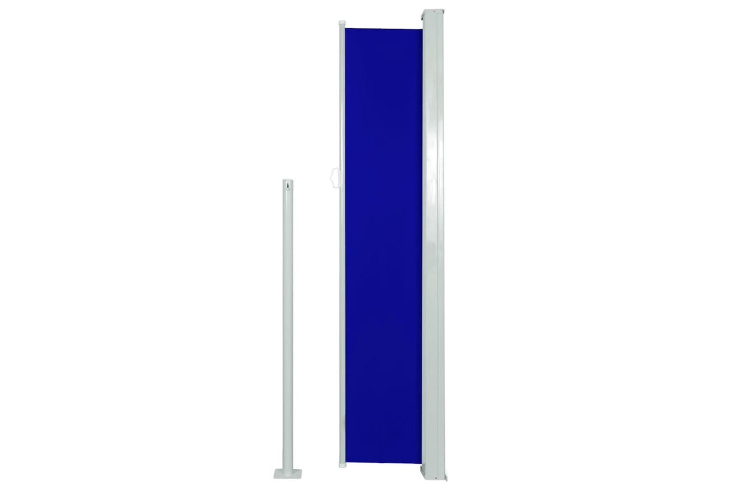 The screen is made of UV and tear-resistant polyester. The cassette is installed on a sturdy steel base in the vertical position, and the retractable awning can be easily pulled straight out. The awning also has an automatic roll-back function.