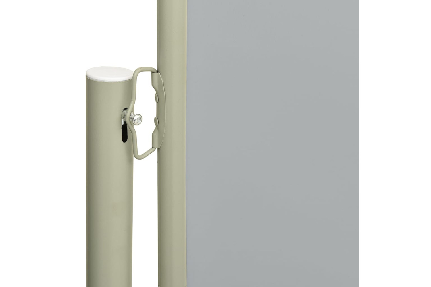 The screen is made of UV and tear-resistant polyester. The cassette is installed on a sturdy steel base in the vertical position, and the retractable awning can be easily pulled straight out. The awning also has an automatic roll-back function.