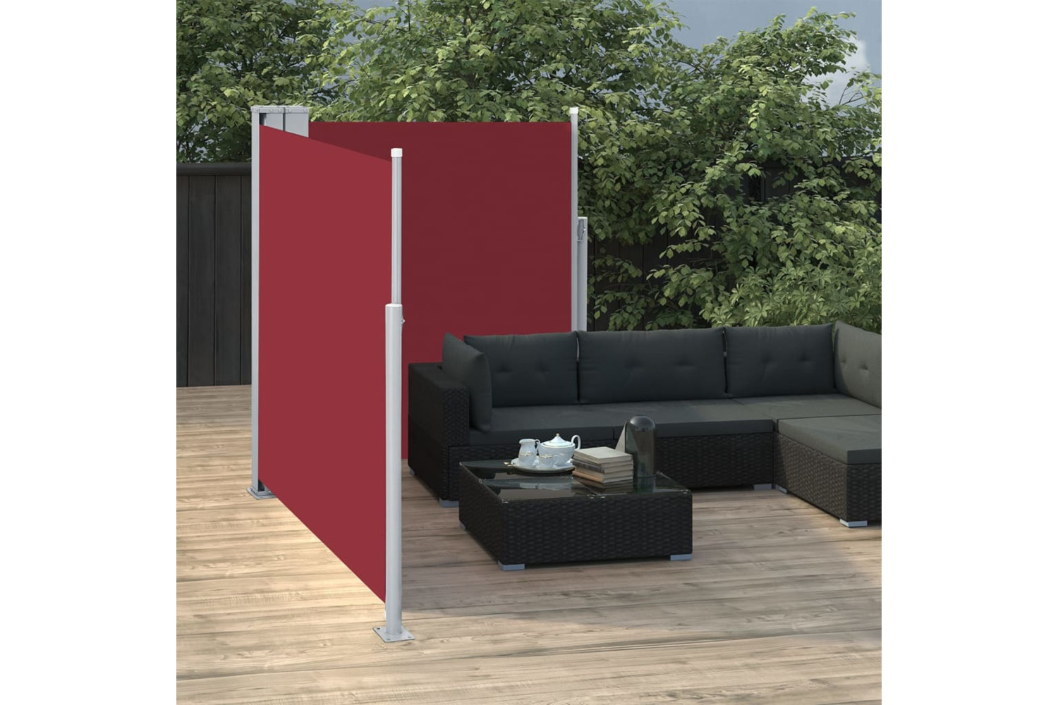 The simple yet stylish design makes it an ideal complement for your garden, patio, balcony, etc. The privacy screen has an automatic roll-back function and the width is adjustable to up to 600 cm. The outdoor screen is made of UV-proof, tear-resistant and water-resistant polyester fabric with a PU coating.
