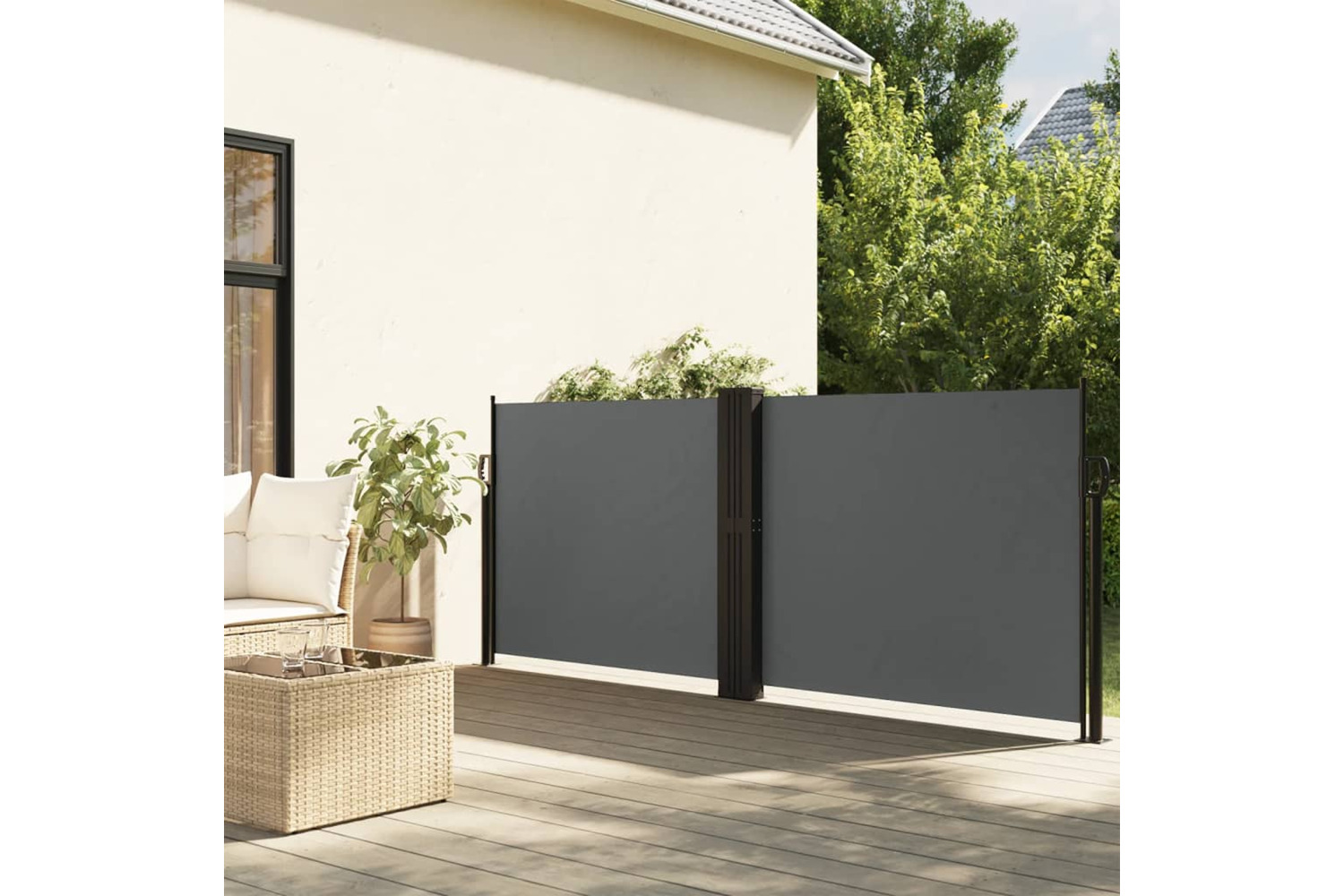 The simple yet stylish design makes it an ideal complement for your garden, patio, balcony, etc. The privacy screen has an automatic roll-back function and the width is adjustable to up to 1200 cm. The outdoor screen is made of UV-proof, tear-resistant and water-resistant polyester fabric with a PU coating.