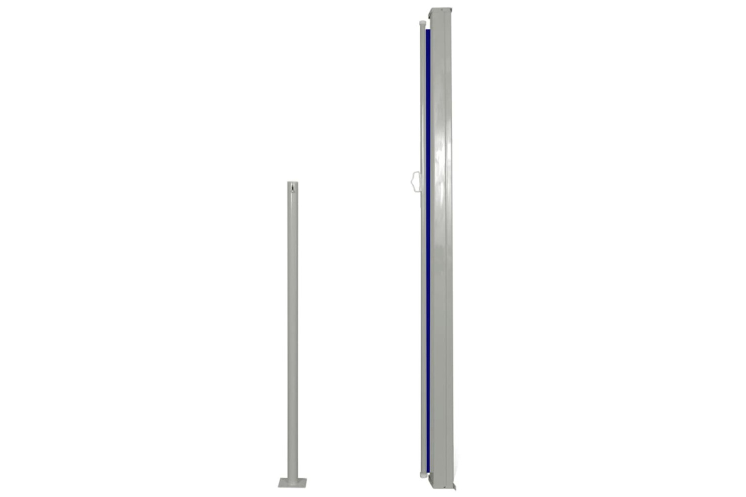 Made of UV resistant and tear resistant polyester, it's also very durable. The cassette is installed on a wooden pole in the vertical position, and the retractable awning is pulled straight out. The width of the awning is adjustable to up to 300 cm. The awning also has automatic roll-back function.