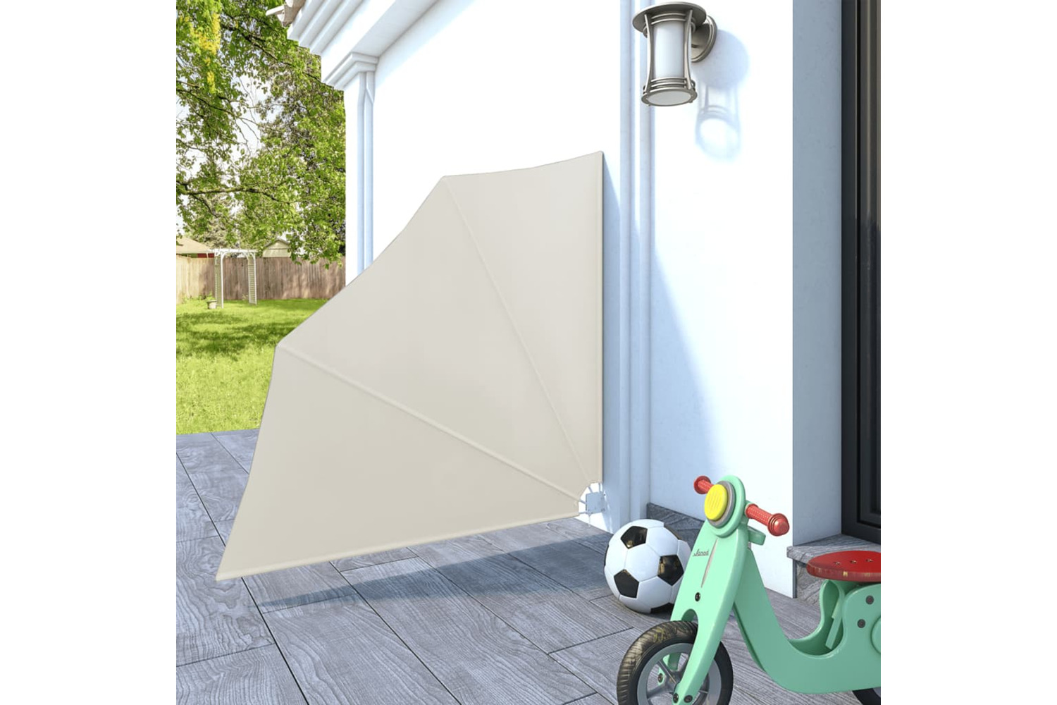 Made of hard-wearing polyester, this balcony awning is water- and dirt repellent and UV- and weather resistant. The strong powder-coated steel frame makes the garden awning sturdy and very durable. Thanks to the folding design, this balcony privacy fence can be folded easily when not in use to save space. Thanks to the wall bracket, this balcony windscreen can be mounted onto the wall easily.