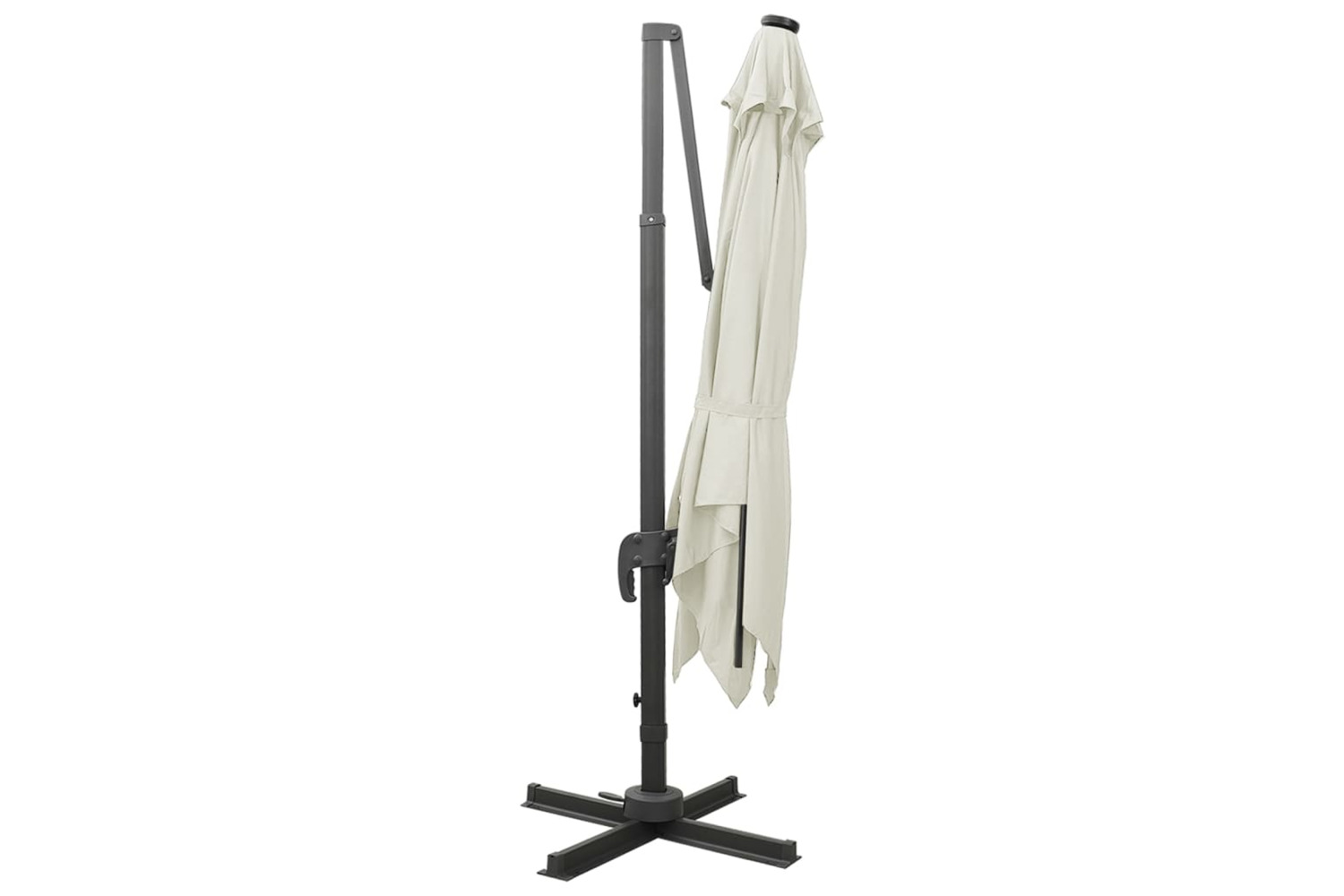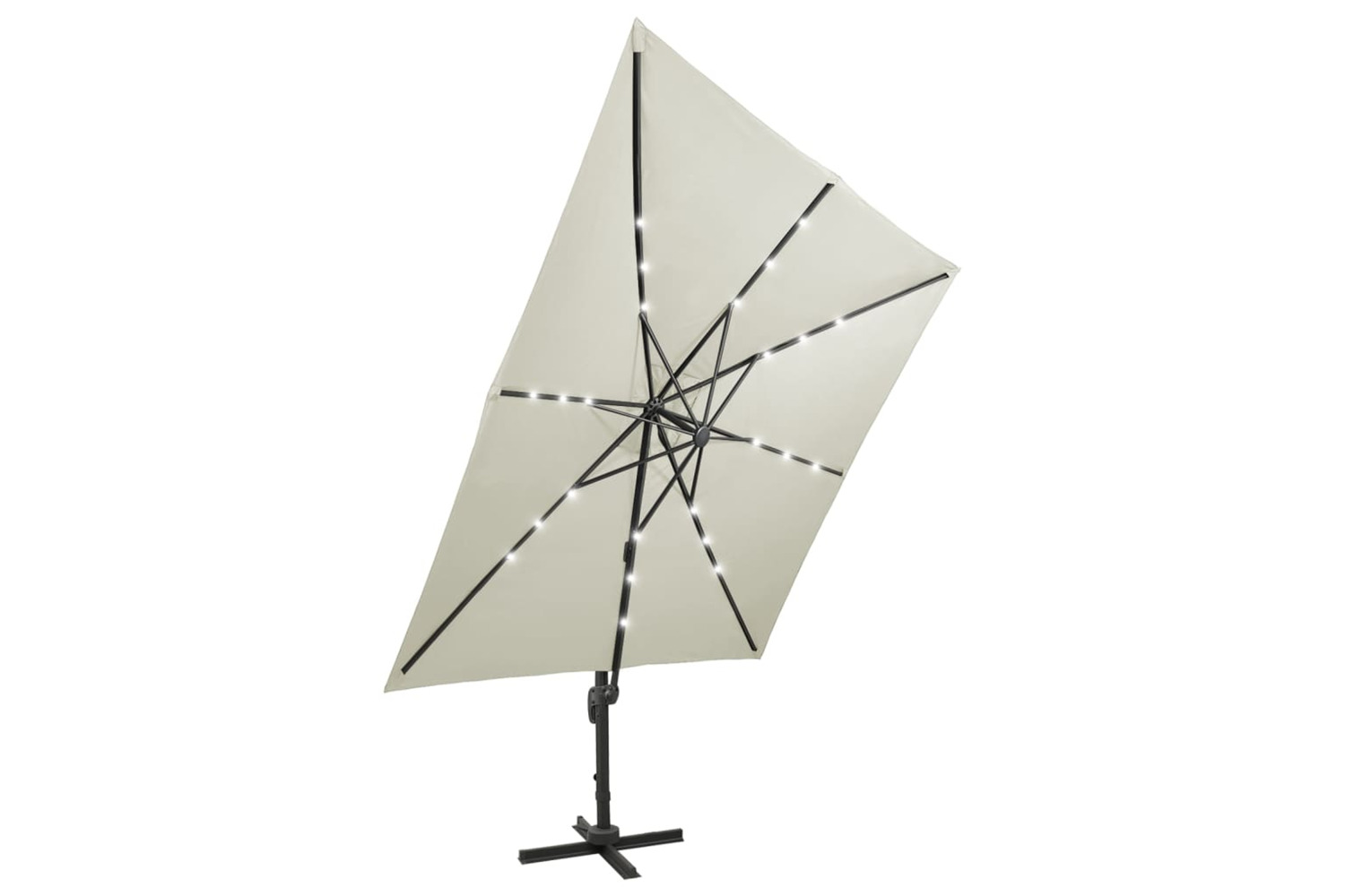 This elegant cantilever garden parasol with LED lights is an excellent choice for creating some shade and protection from the sun's harmful UV rays. When the sun goes down, the LEDs will illuminate your outdoor living space.