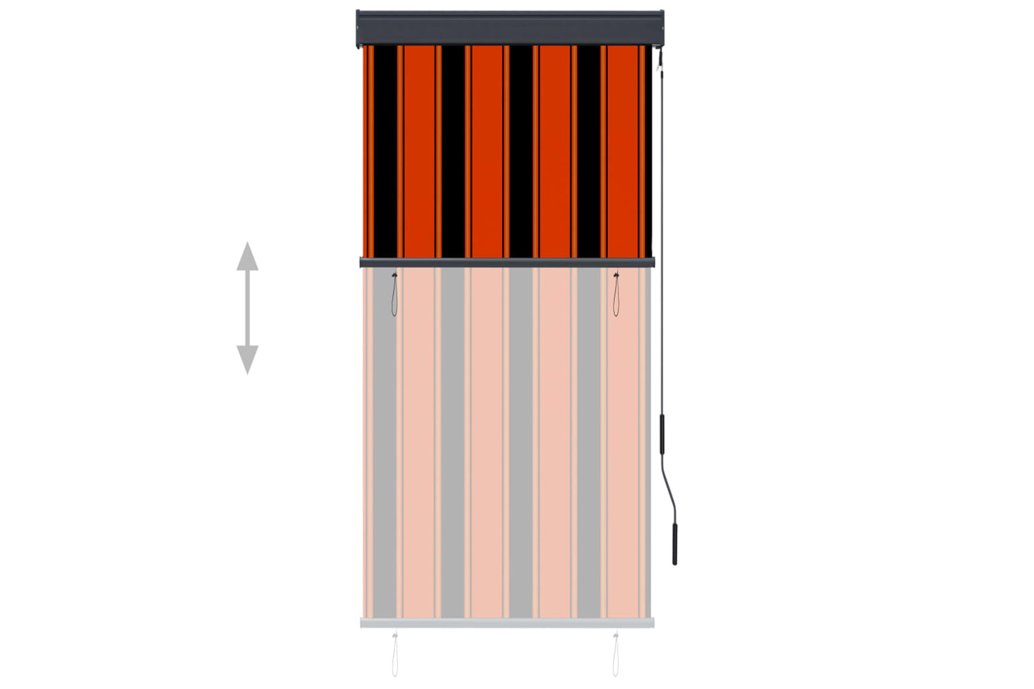 Made of breathable polyester fabric with PA coating, this vertical awning allows for well air circulation and can block most harmful rays. It can provide daytime privacy in a range of patio, garden or other outdoor applications. The aluminium front bar and steel cassette will prevent sagging and bending. Thanks to the hand crank mechanism, you can easily open and retract the blinds.